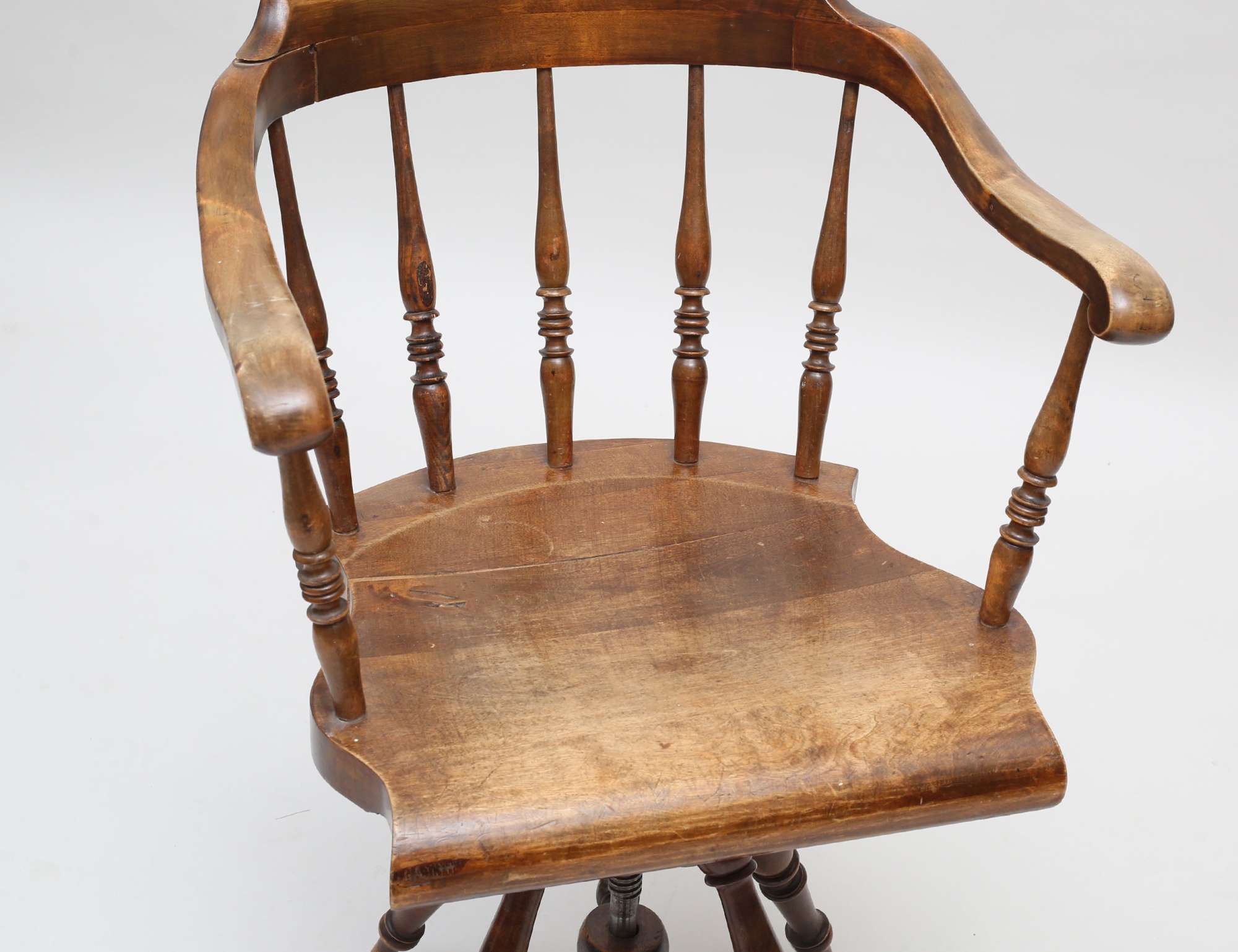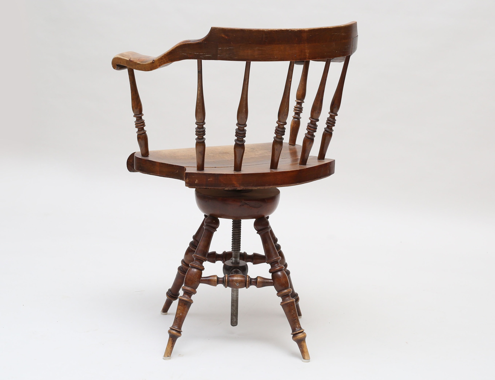 betsad björk, svarvade ben oh spjälor, snurrbar med höj- och sänkfunktion, höjd 67, bredd 60 (smärre sprickor)