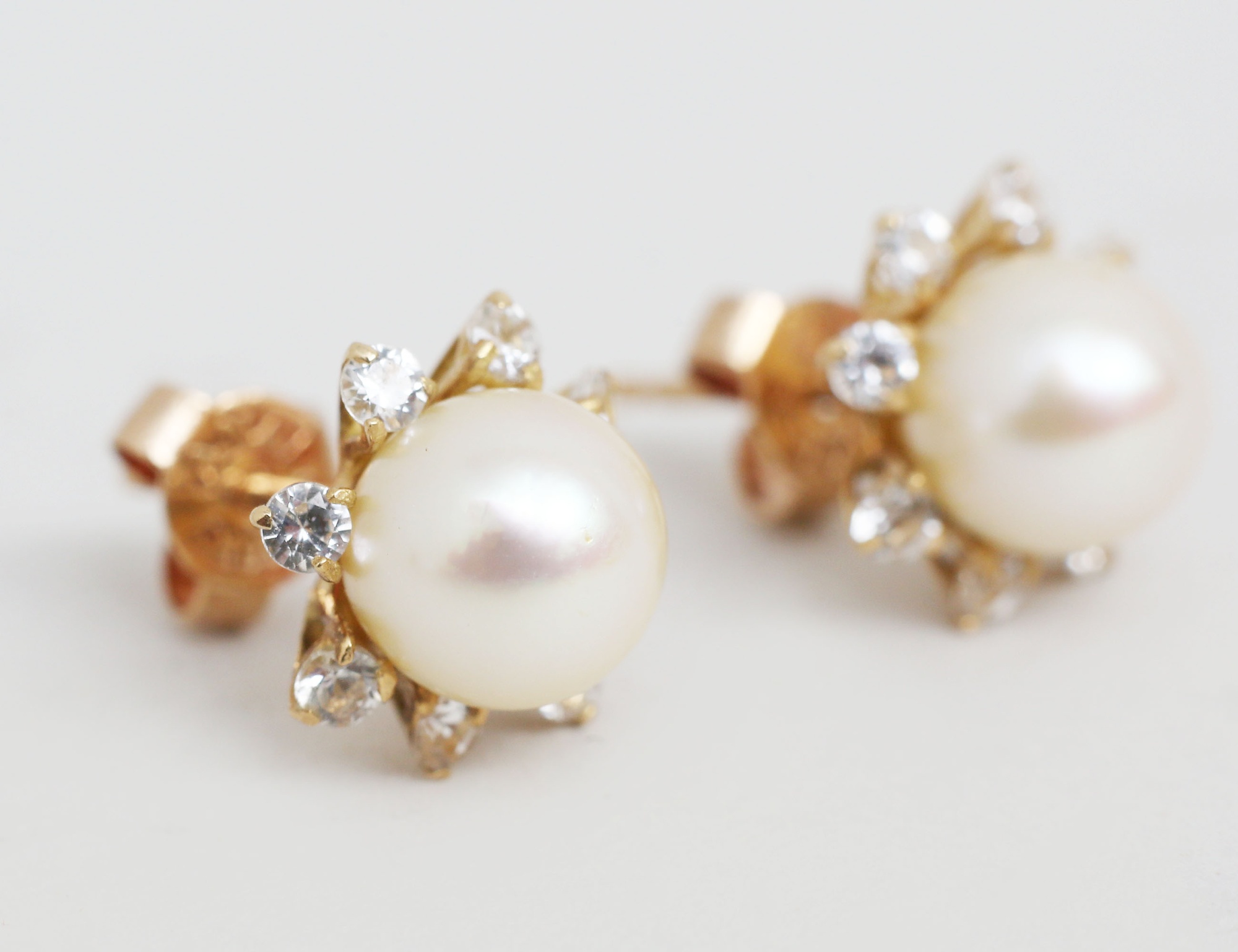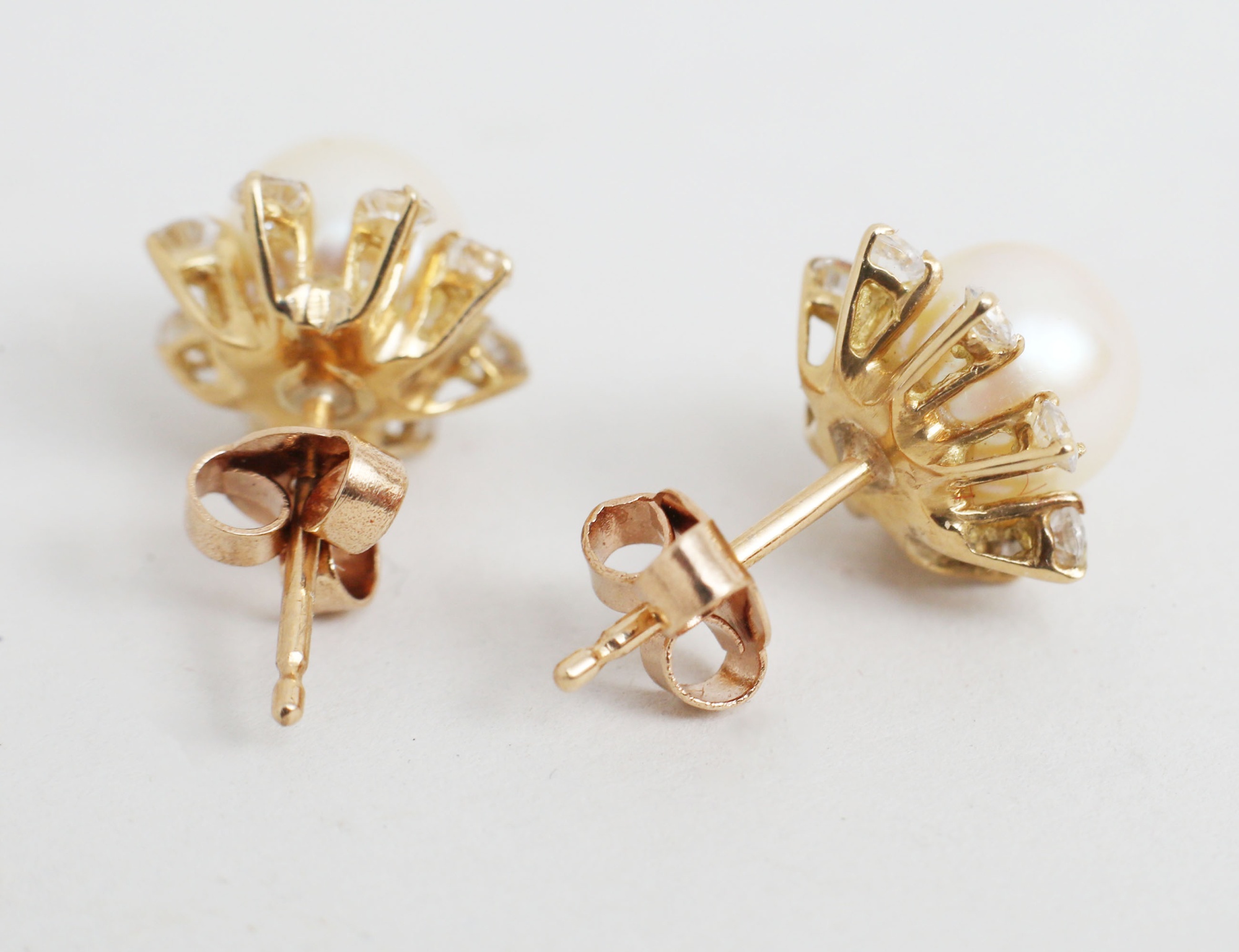 med infattad pärla samt 8 briljantslipade diamanter, svenska stämplar, totalvikt 3,40 gram