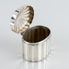Oval, räfflad form, välvt lock, höjd 6, 7,5 x 6 cm, vikt ca 105 g