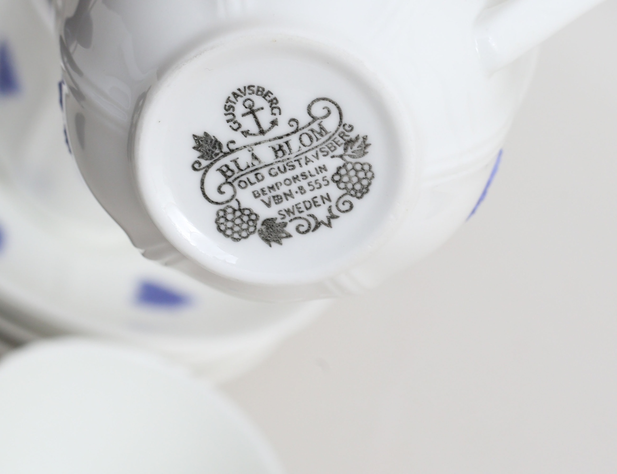 Rörstrand, mörkblå, höjd 9, 4 kaffekoppar med fat "Blå Blom", Gustavsberg, höjd 6,5 (8)