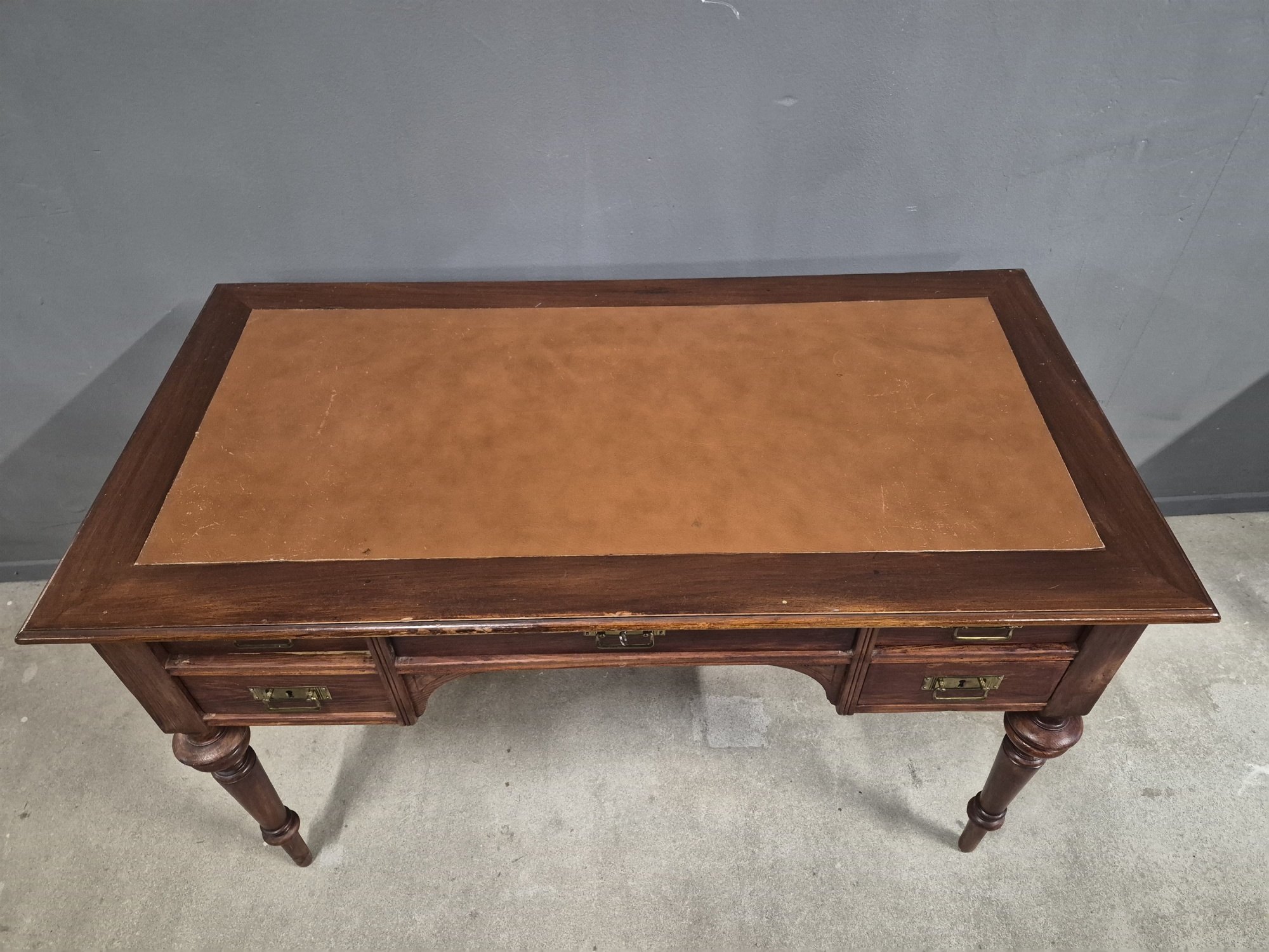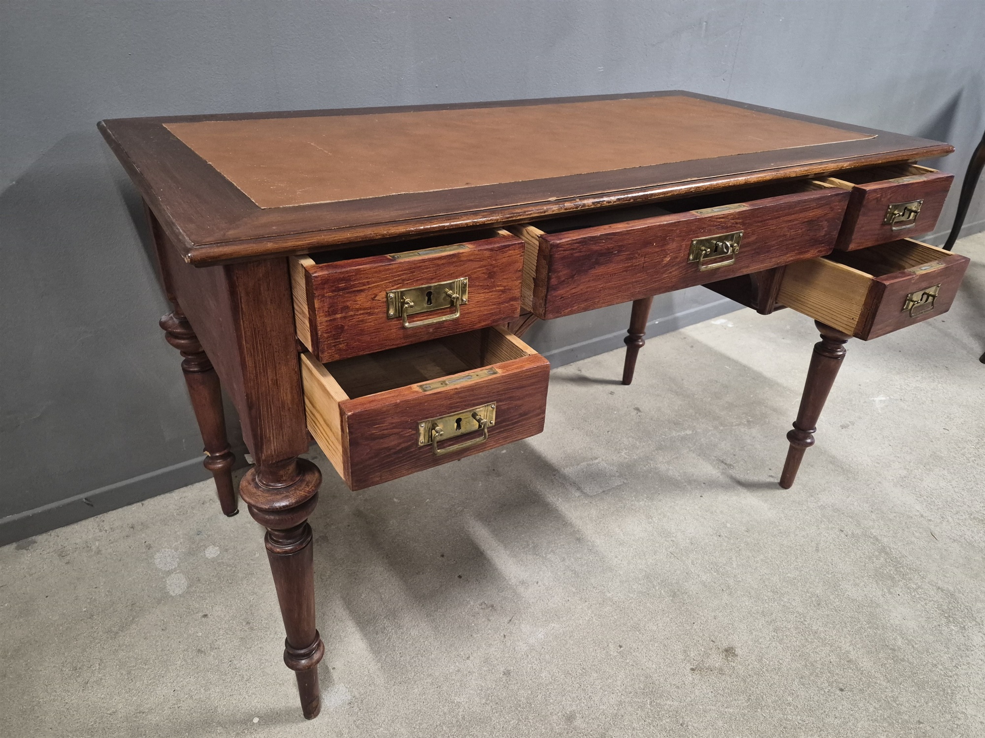 Skrivbord brunbets, läderskiva, ca 1900, höjd 78 cm, mått 125 x 65 cm