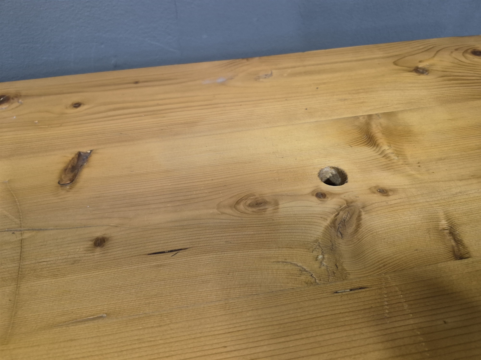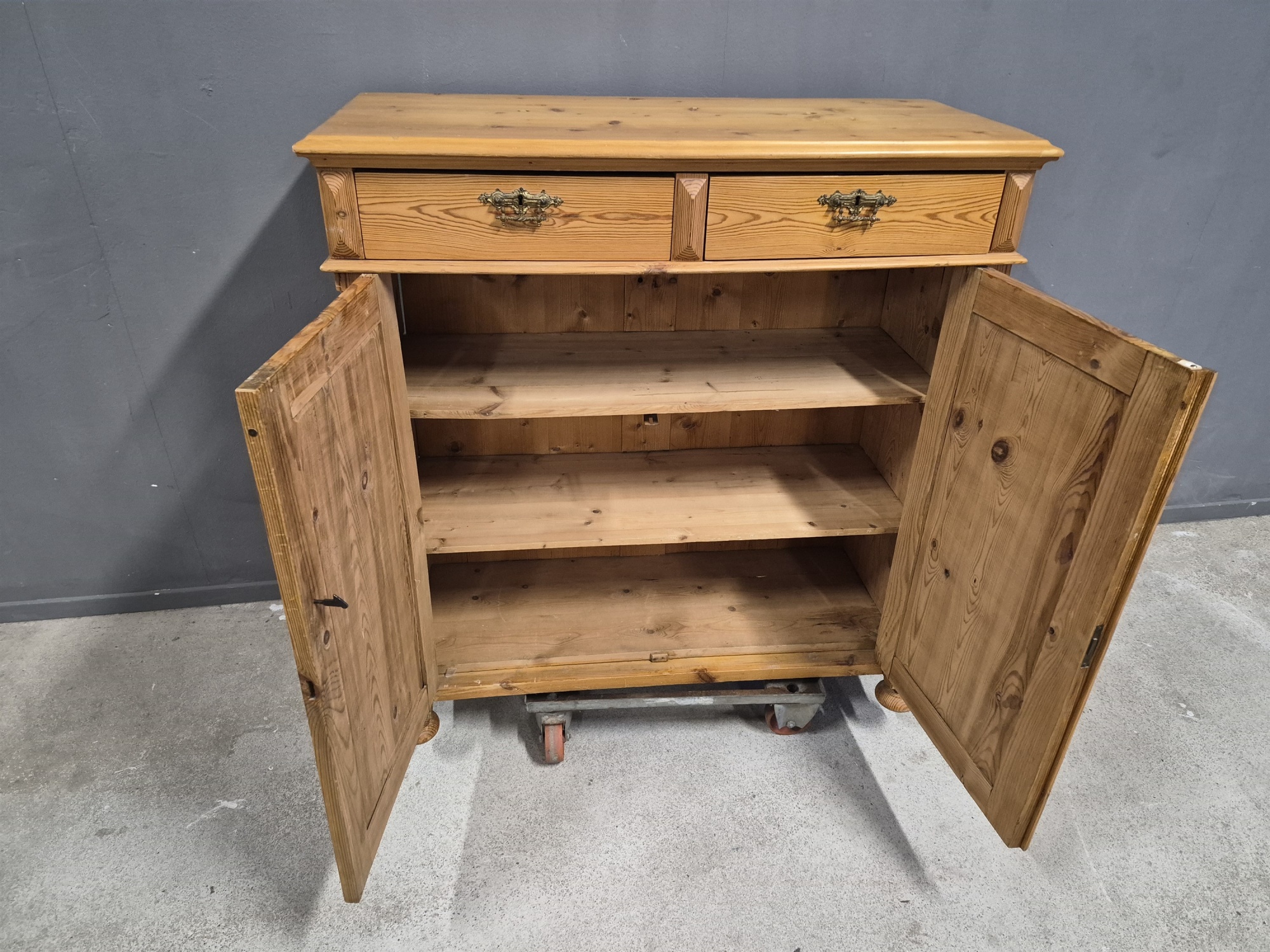 Bilder Skänk, furu, sekelskifte, hål i övre skivan höjd 110 cm, bredd 110 cm, djup 48 cm