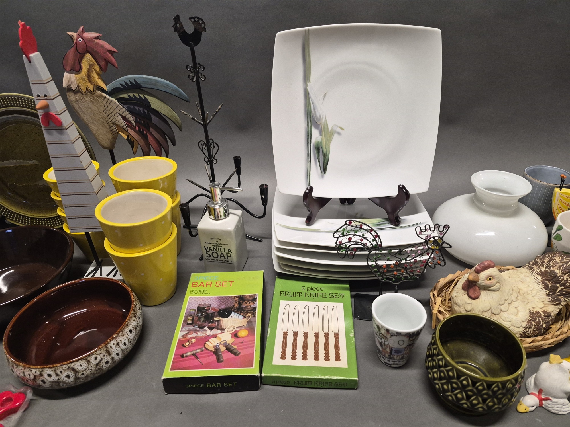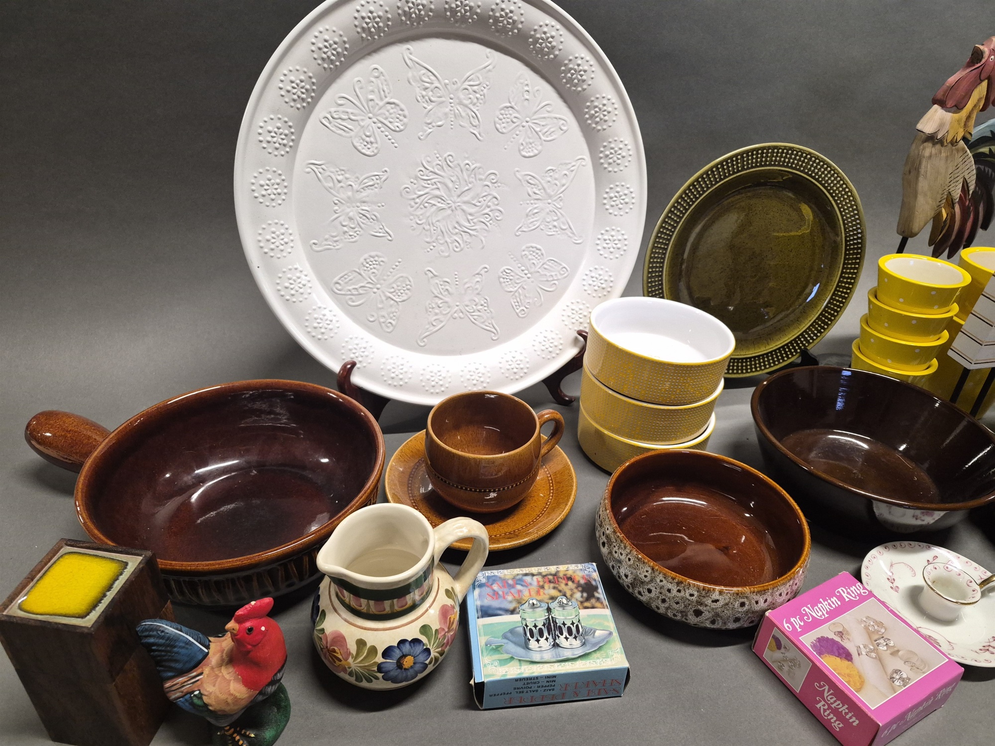Parti bla metall och keramik, största diameter 40 cm, 2 lådor