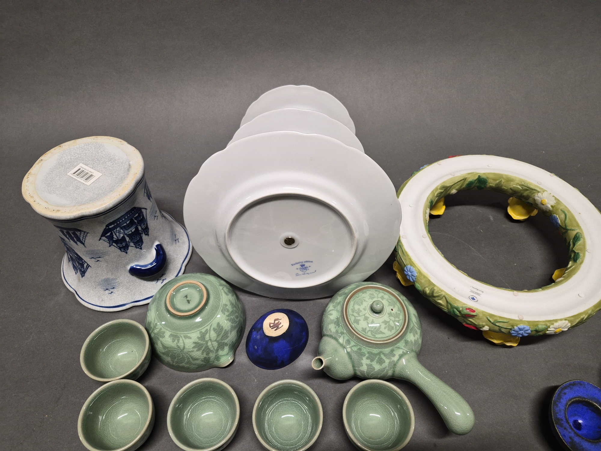 Parti porslin/keramik, bl.a ljushålare Fyrklövern en hållare limmad högsta 37 cm