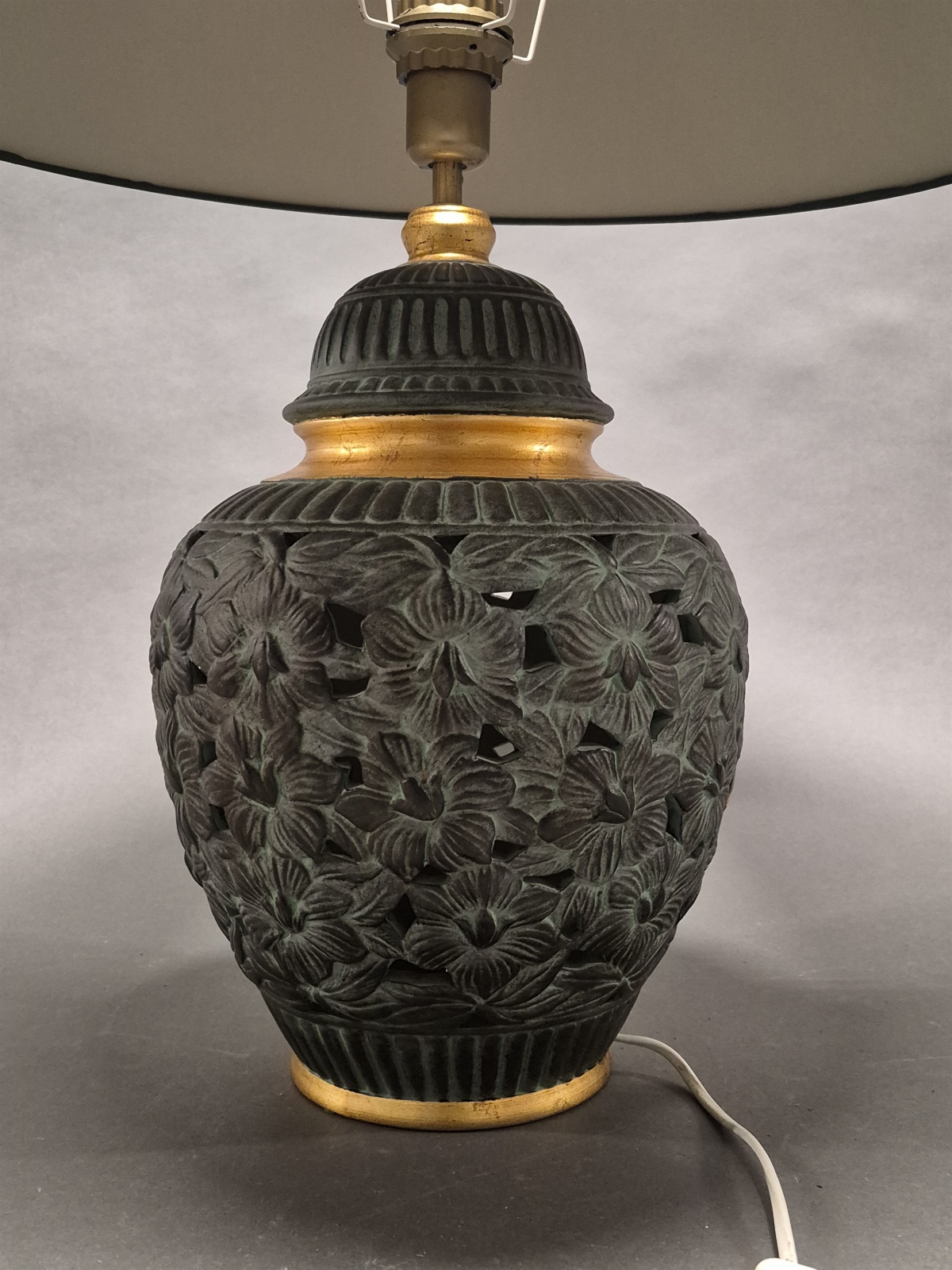 Bordslampa keramik, genombruten fot med belysning höjd 66 cm