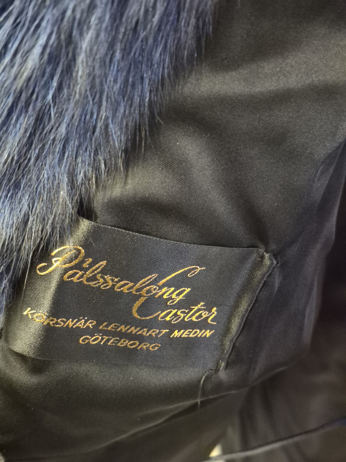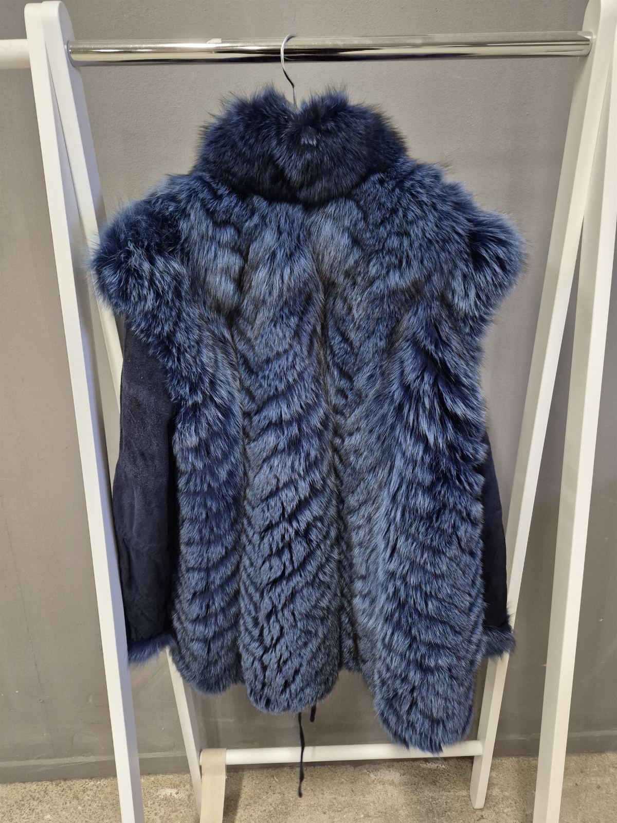 Pälsjacka/väst blåfärgad, avtagbara ärmar, okänd storlek