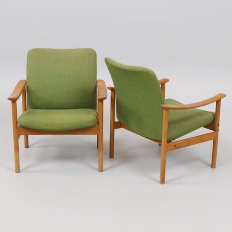 Bilder Fåtöljer ett par, Ljungs industrier Bra Bohag, Malmö, 1960-tal, ben och karmar i ek, fast stoppad klädsel i ull, bredd 68 cm