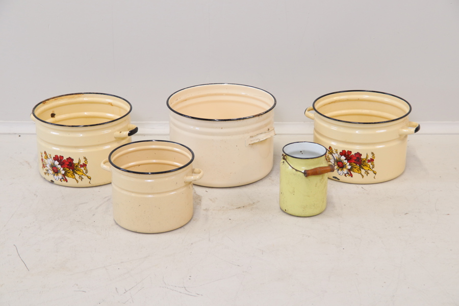 Bilder Grytor m.m, 4+1 st, emaljerad metall.