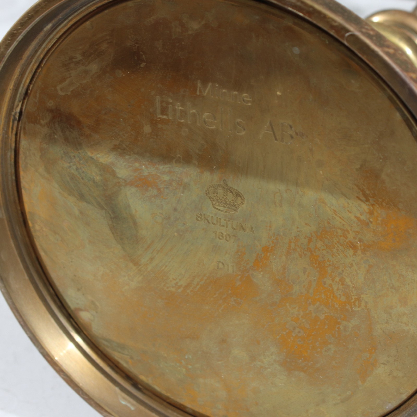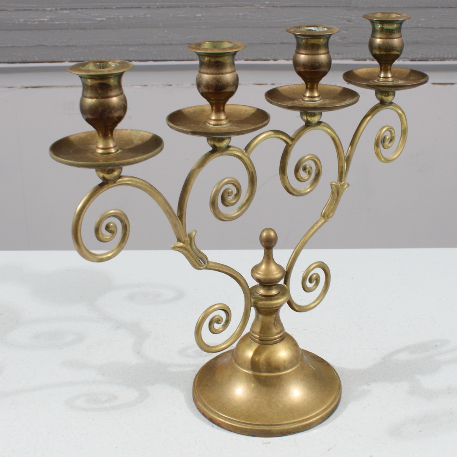 Mässing, 4-armad, botten med gåvogravyr, höjd 29 cm, bredd 34 cm. (vån3)