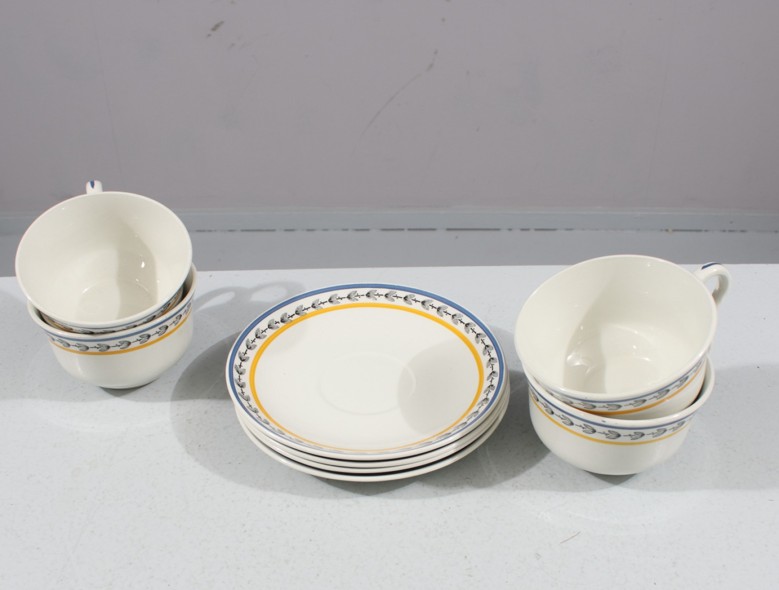 8 delar, 4st te/kaffekoppar samt 4st te/kaffefat, kopp H.6 cm, diameter mynning 10 cm, diameter fat 15,5 cm. (vån3)