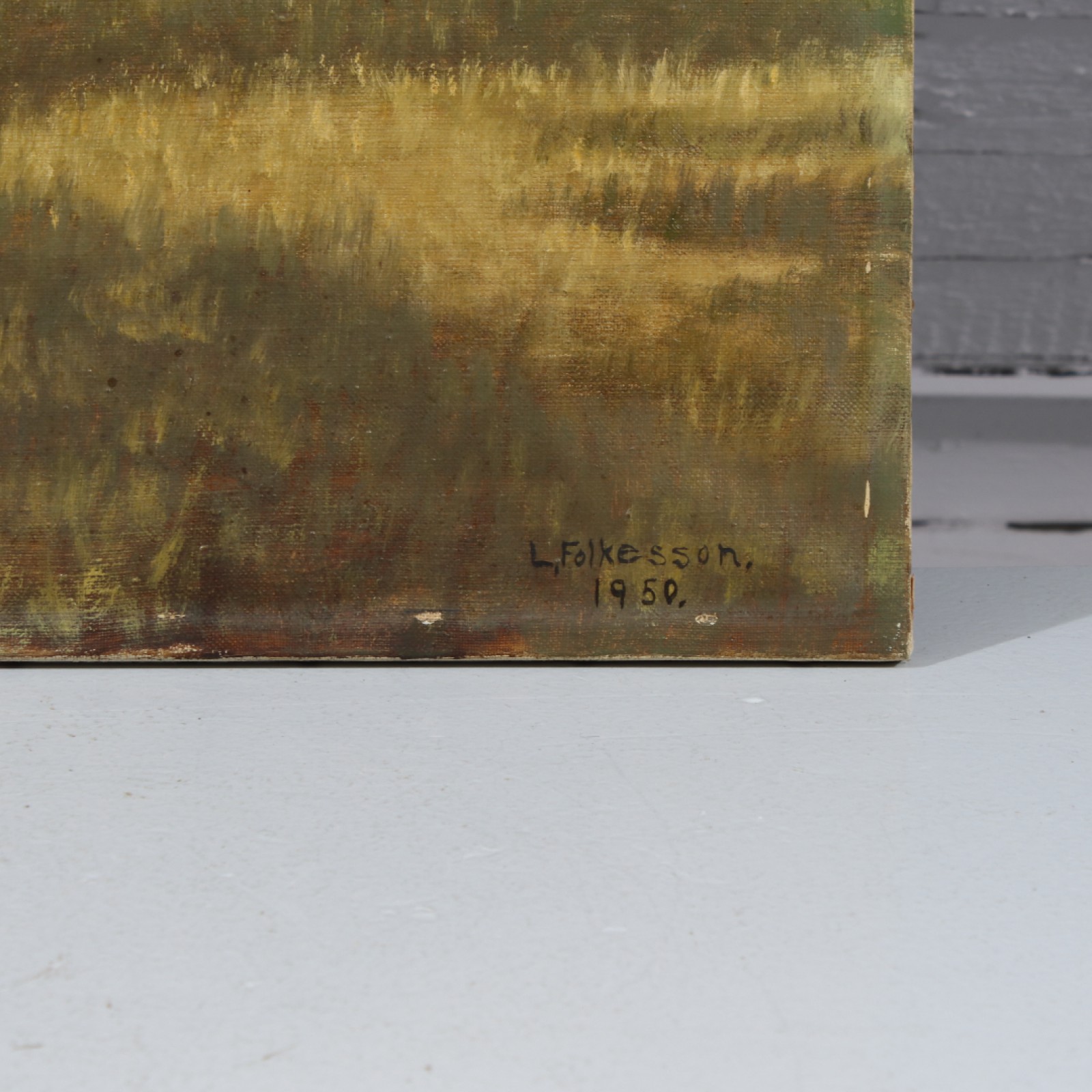 Olja på duk, signerad L. Folkesson samt daterad 1950, ram saknas, 38x46 cm. (vån3)