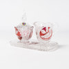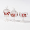 Två bonbonjärer, kaffeservis bestående av gräddkanna, sockerskål och fat samt en skål på fot, totalt 6 delar, "Böhmisk kristall", dekor av fåglar mot röd dekor, Hofbauer, Tyskland, etikettmärkta, högsta 23 cm