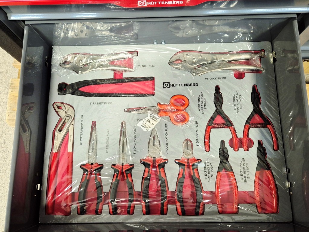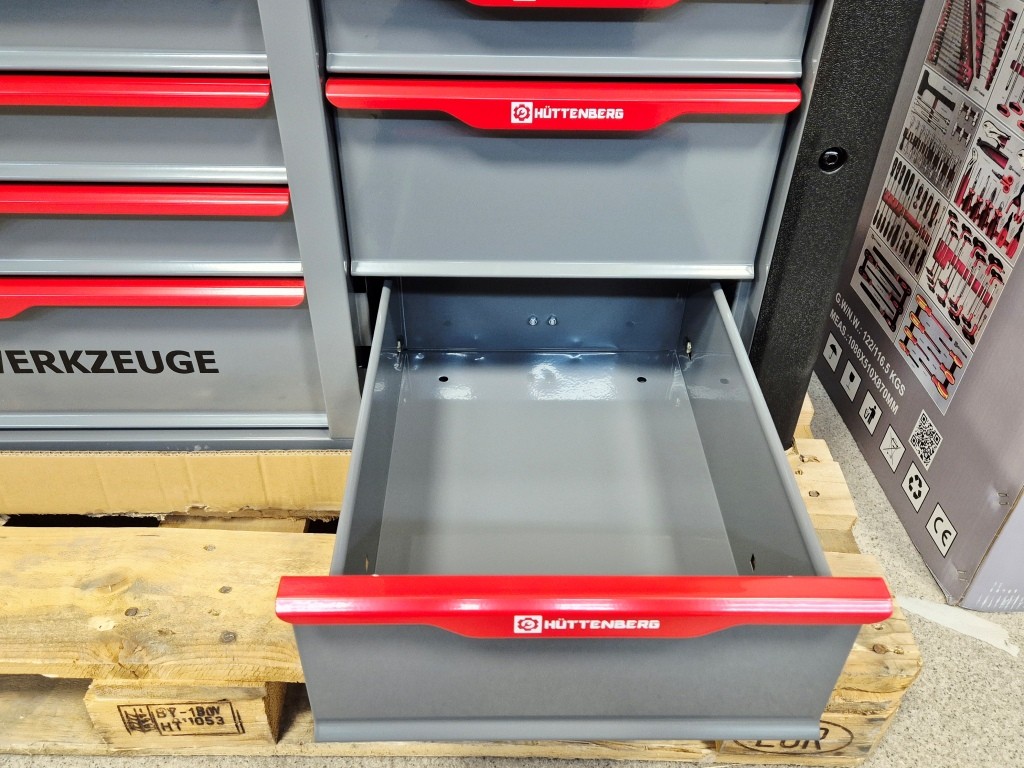 Verktygsvagn med 12 lådor Hüttenberg9 av lådorna är fyllda med verktyg. Mått: 106x48x98cm
