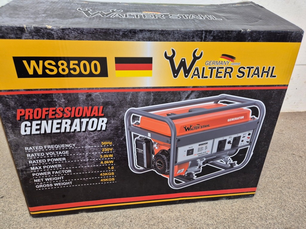 BensingeneratorEffekt,max: 4kWEffekt, kontinuerligt: 3kWSpänning: 230VMärke: Walther StahlModel: WS8500