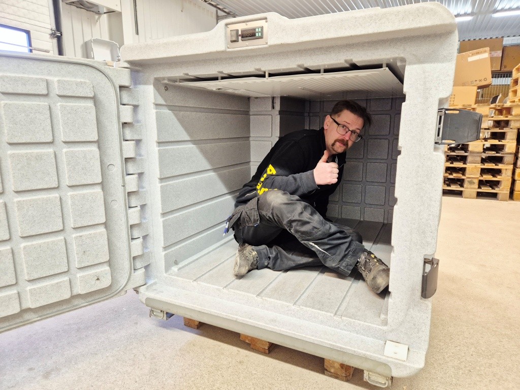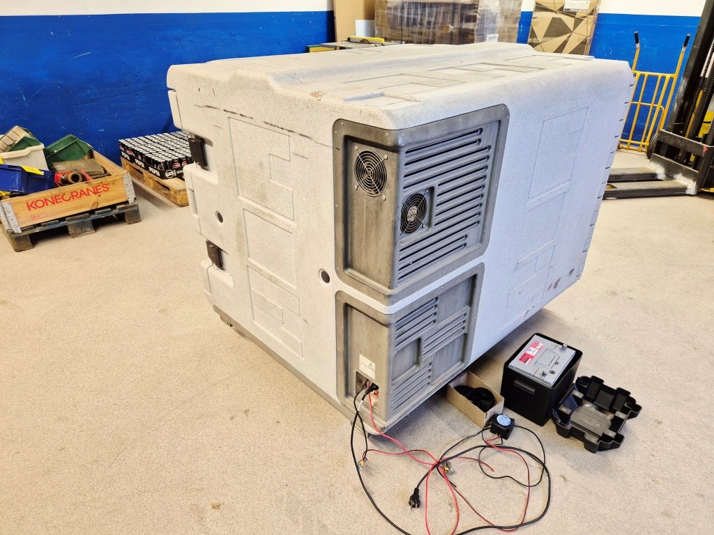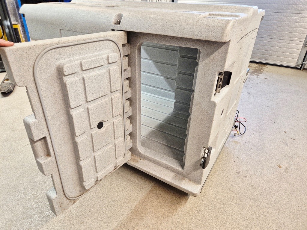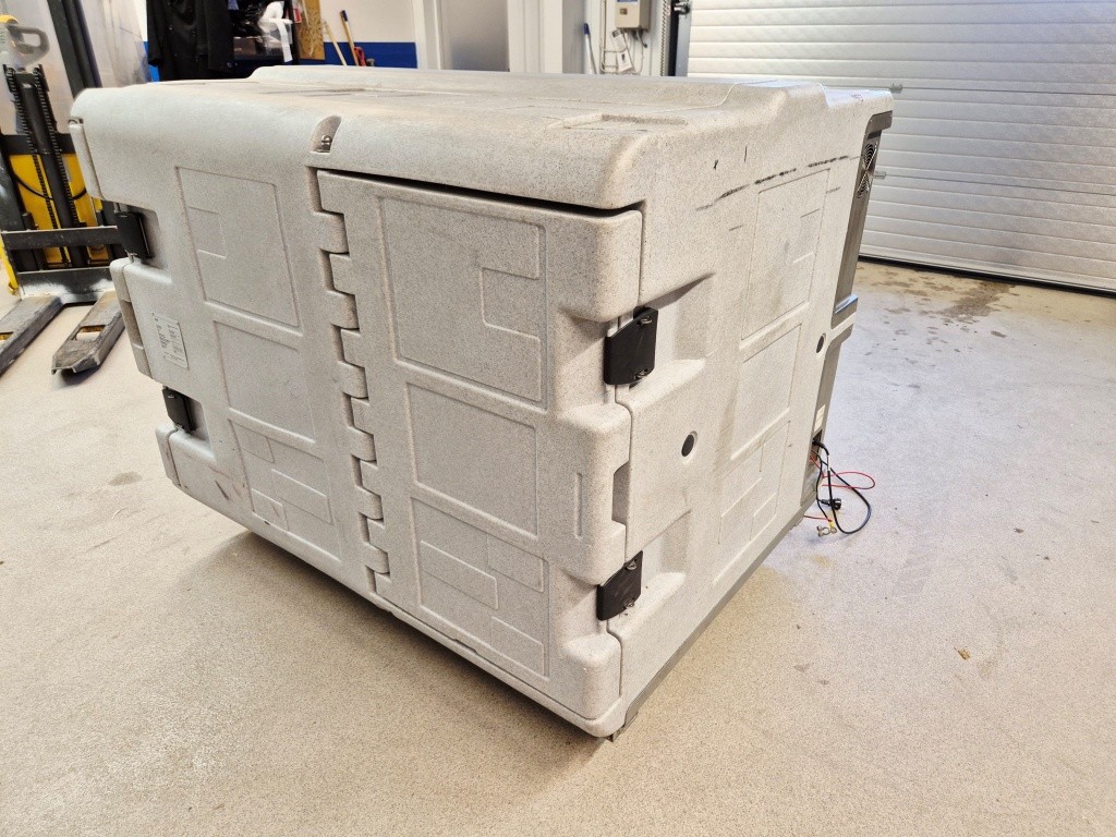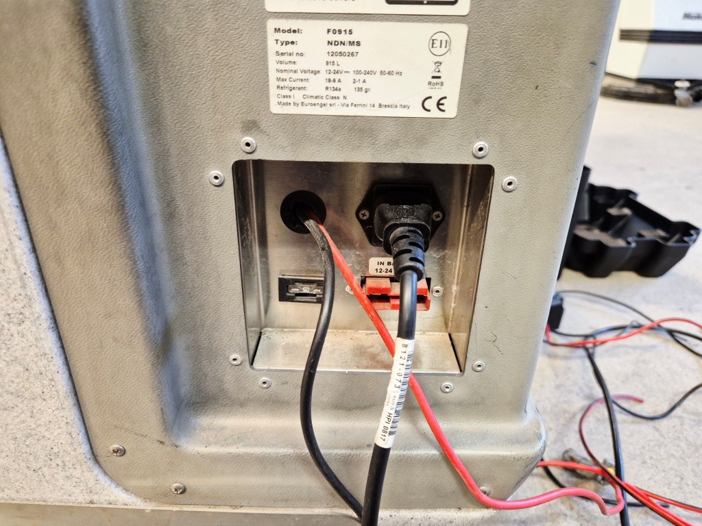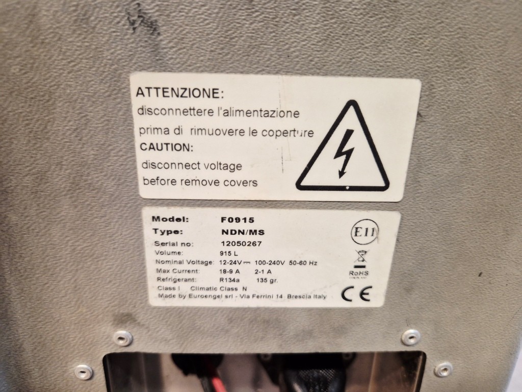 Mobilt kylskåp EuroengelModell: F0915/NDNDriftspänning: DC: 12V/24V AC: 110V - 240VTillverkningsår: 2012Volym: 915 literMin temperatur: 0°CYttermåttDjup: 150cmBredd: 120cmHöjd: 115cm