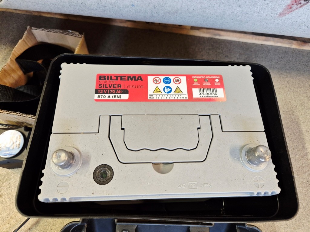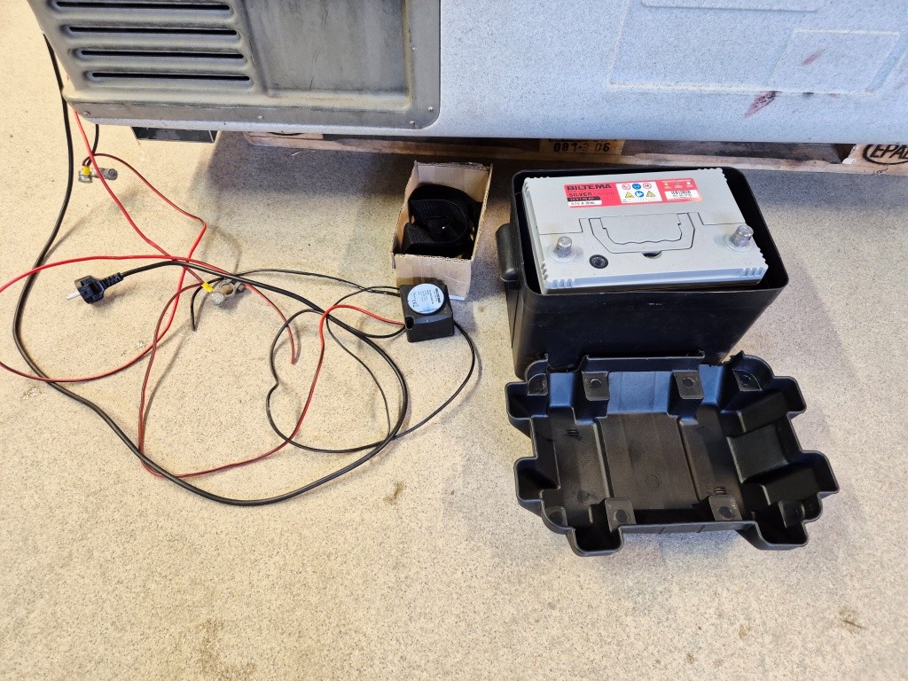 Inklusive ett 12V batteri, samt laddningsdiod som kopplas till bilens laddström som säkerställer att bilens startbatteri ej laddar ur.