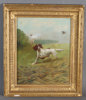 Usignert: Jakt, olje på plate. Muligens Eilert Mehl. 50x40 cm., ramme med rep./skade.