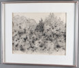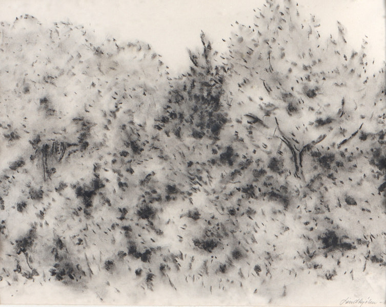 Erling Lindkjølen: Skog 1983, tegning. 33x42 cm., noe bølgete ark.