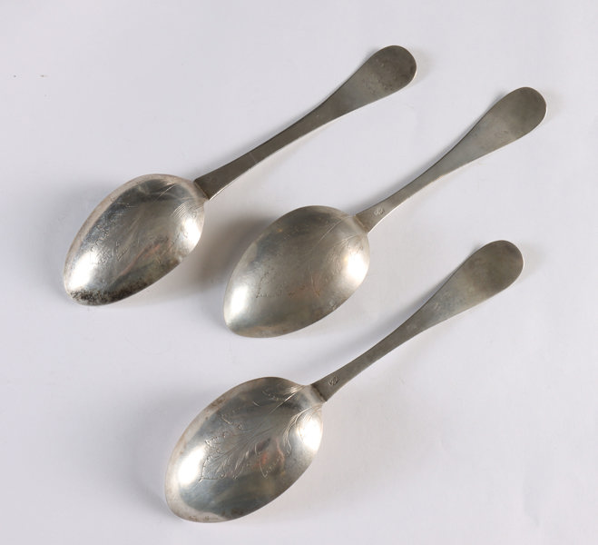 Bilder 3 skjeer i sølv, Kragerø 1700 t.