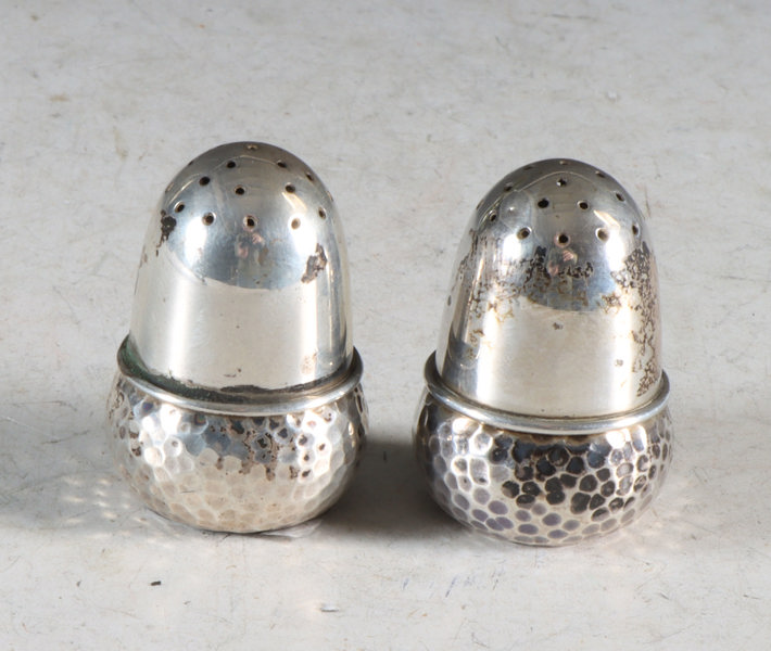 Et par saltdrysser i sølv. H: 4 cm.