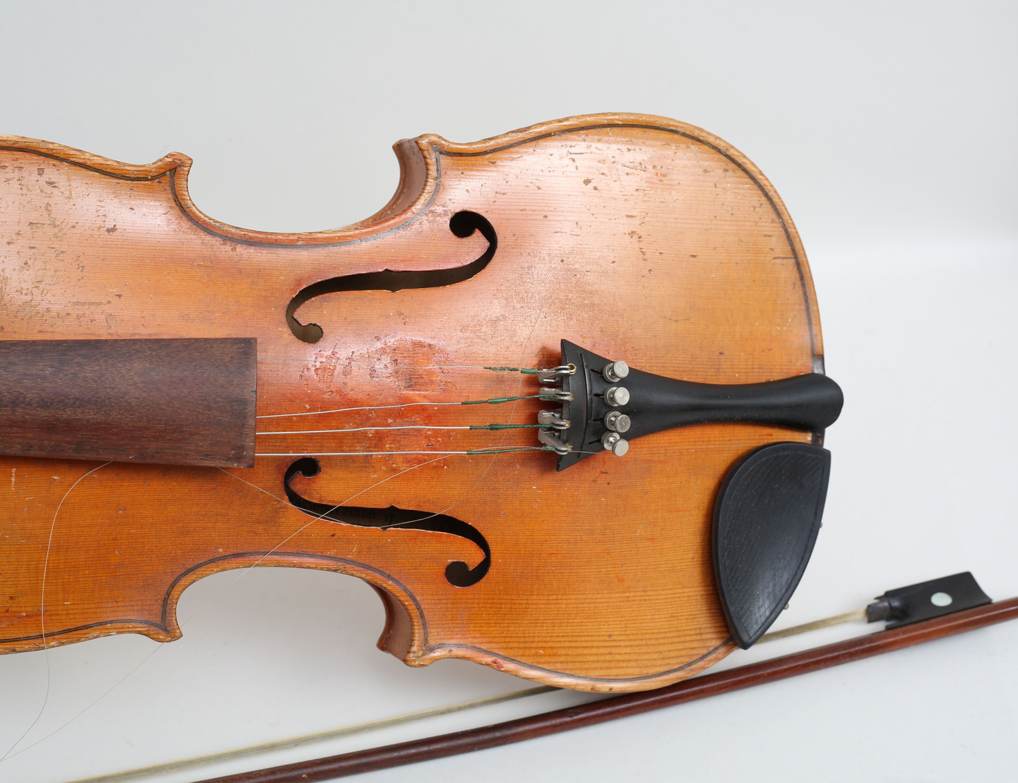 etikettmärkt Kopia av A. Stradivarius Tyskland, längd 58 (strängar med skador)