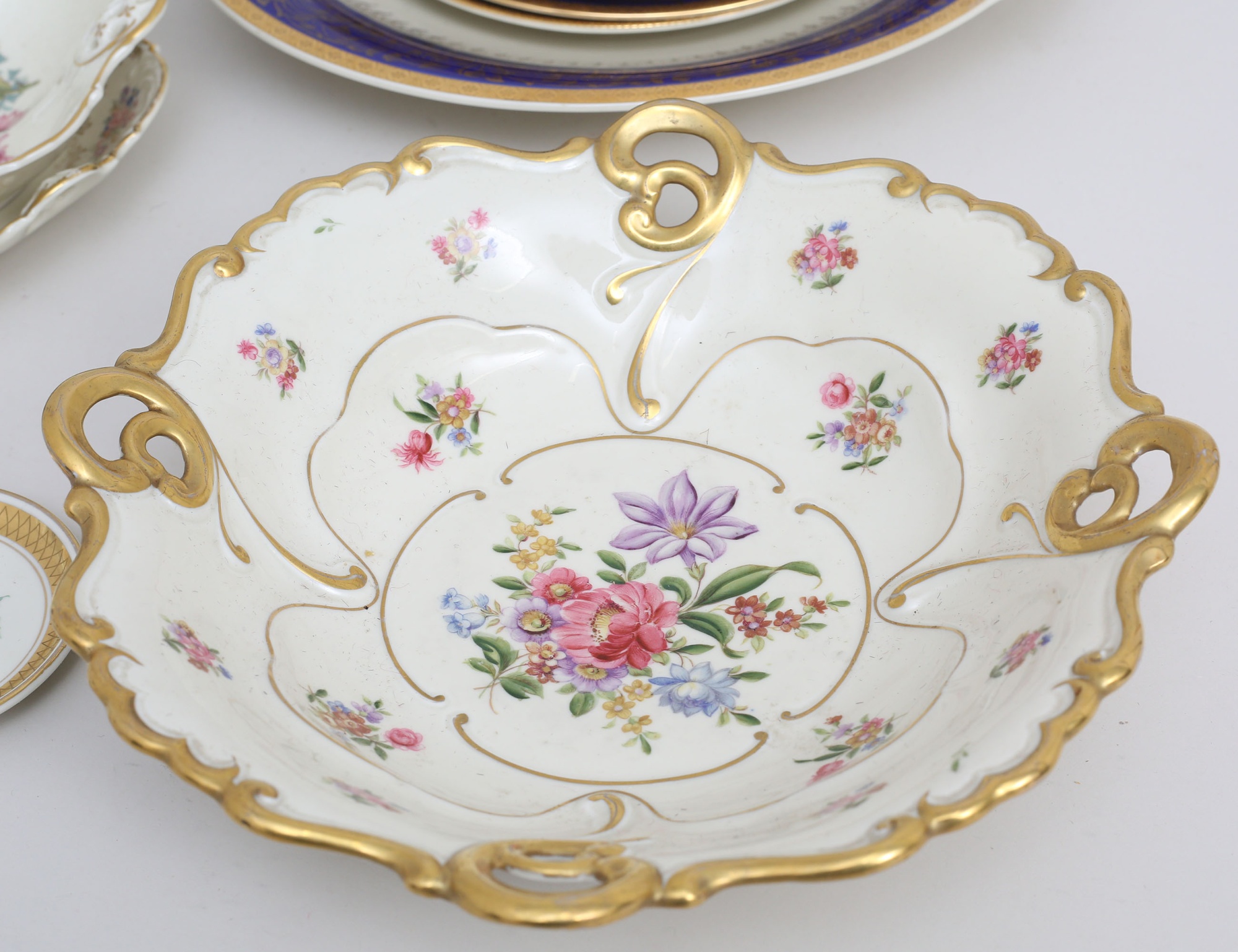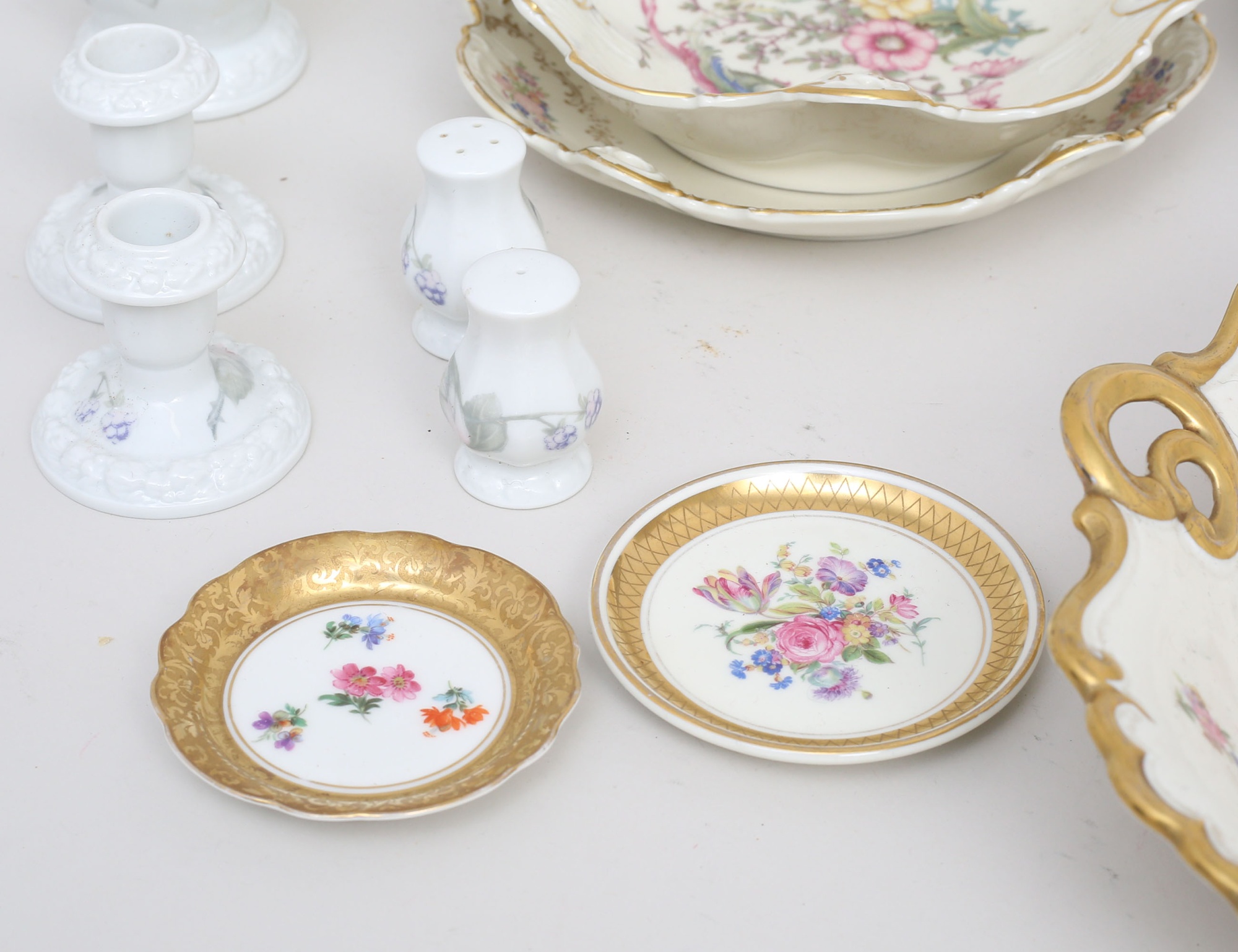 vas höjd 16, 1 par ljusstakar höjd 6, 1 par ströare höjd 5 - "Maria Björnbär" Rosenthal, skål, skålfat och litet fat Rosenthal, fat och 6 assietter Seltmann Wieden, skål Ilmenau, litet fat - Tyskland