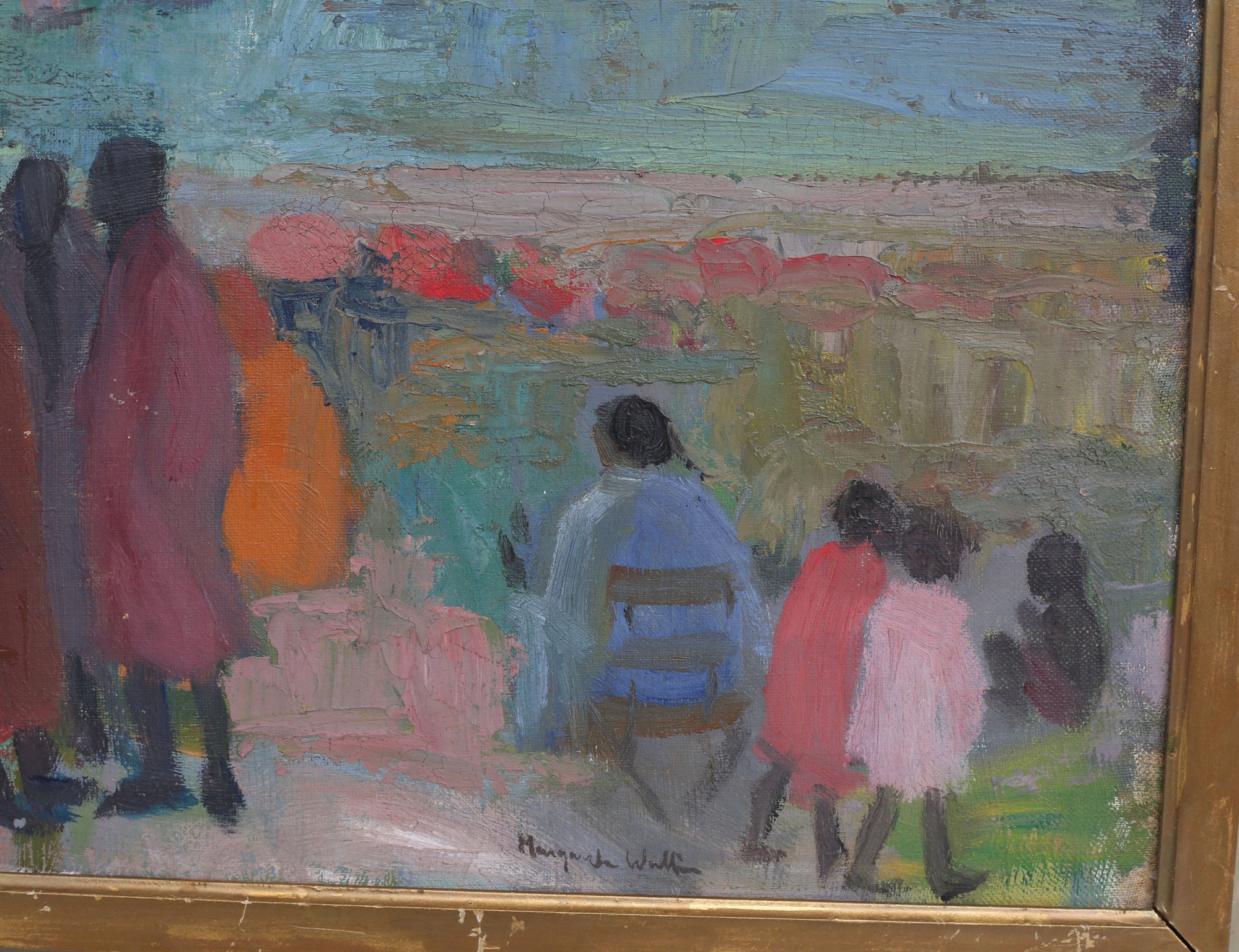 oljemålning på papperspannå, figurer vid strandparti, signerad, 29x37, rammått 44x51