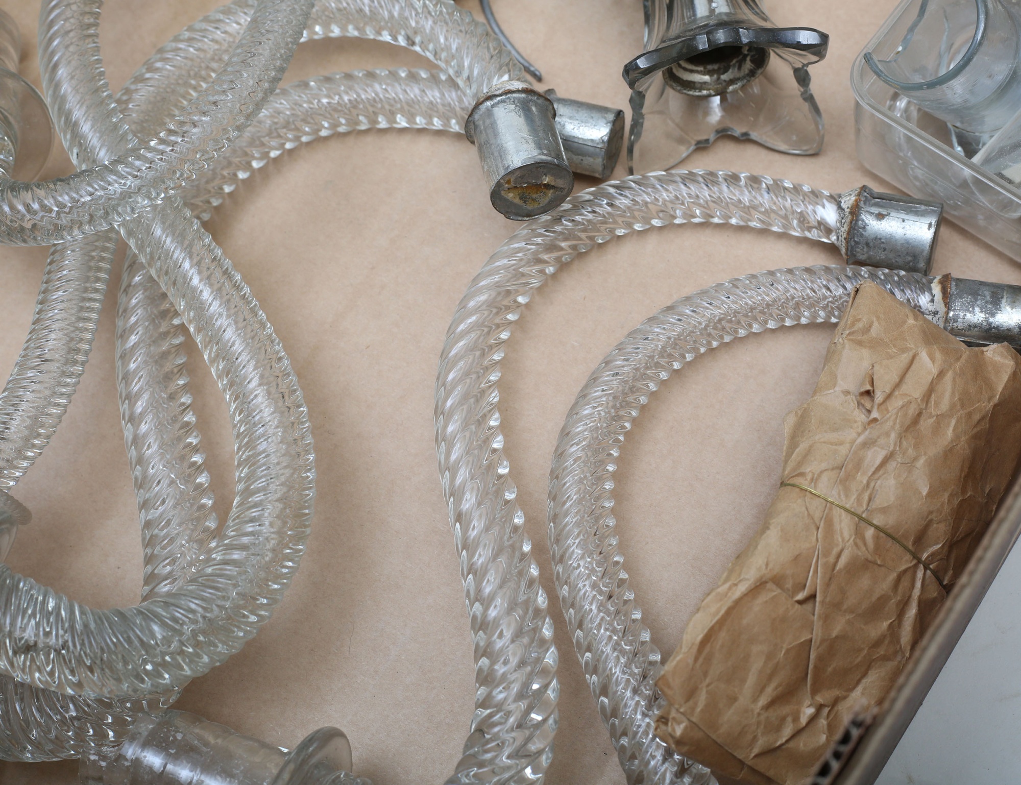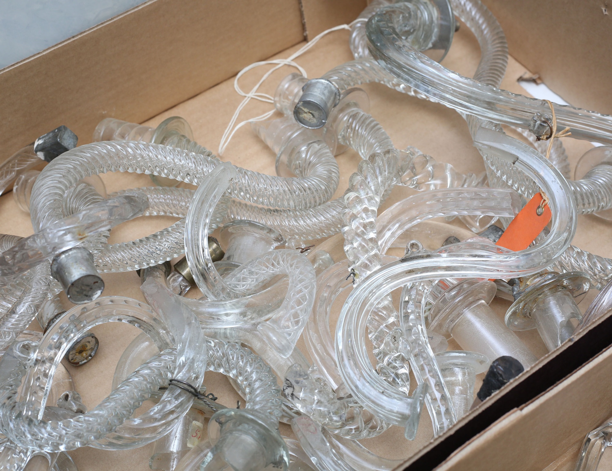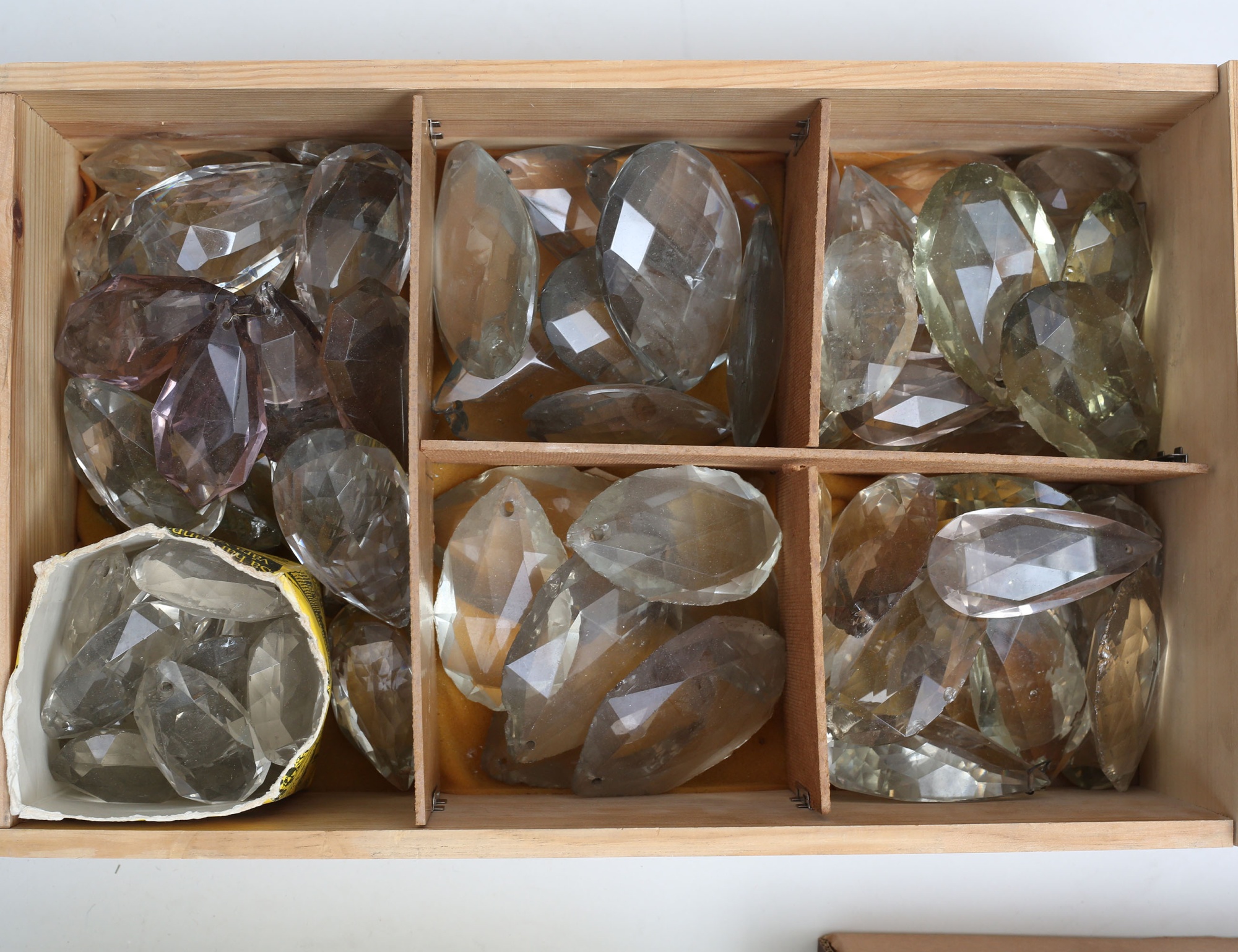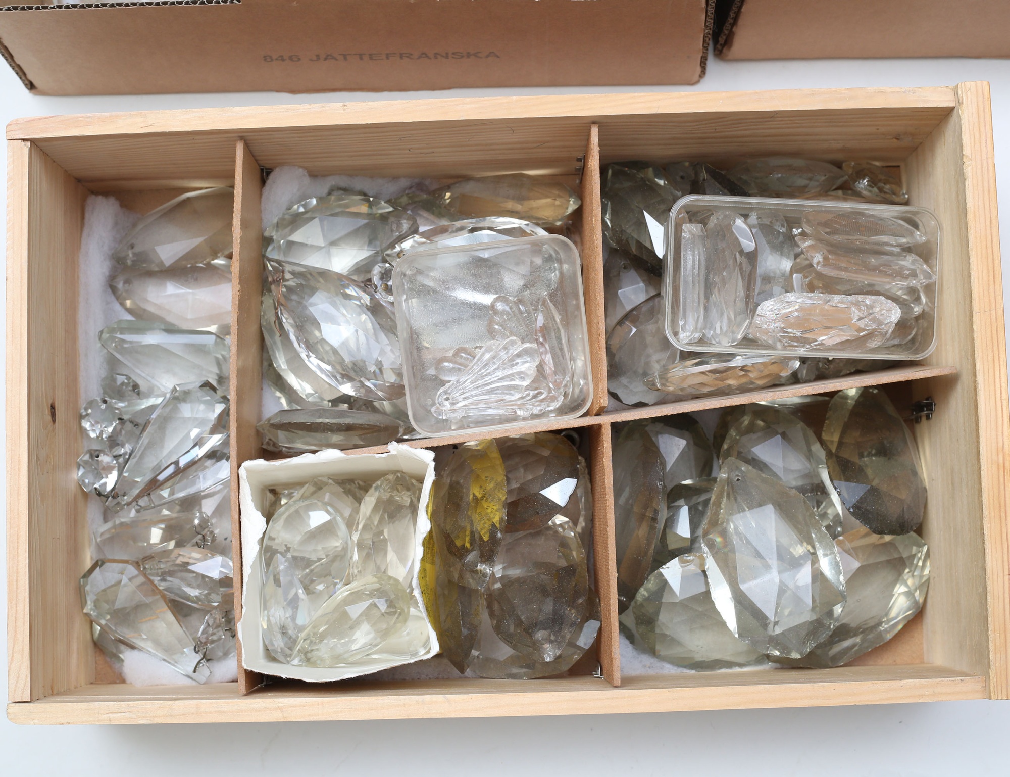 såsom prismor (1700-1900-tal), ljusarmar, bottenskålar, manschetter m.m., proveniens: Neumans Antikhandel Stockholm