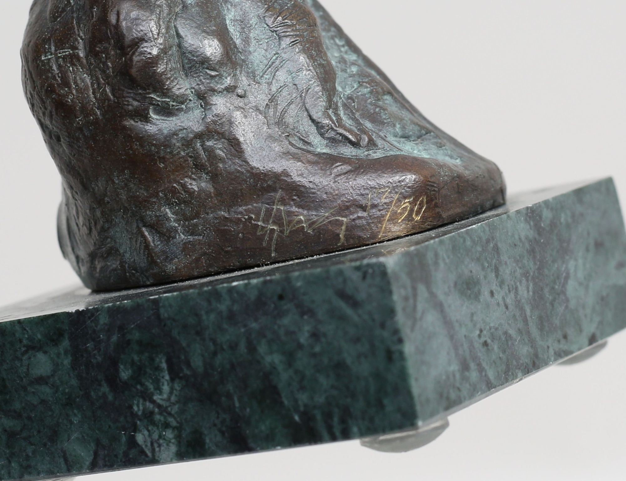 skulptur i form av bi på tumme, patinerad brons, stensockel, signerad och numrerad 17/50, höjd 16