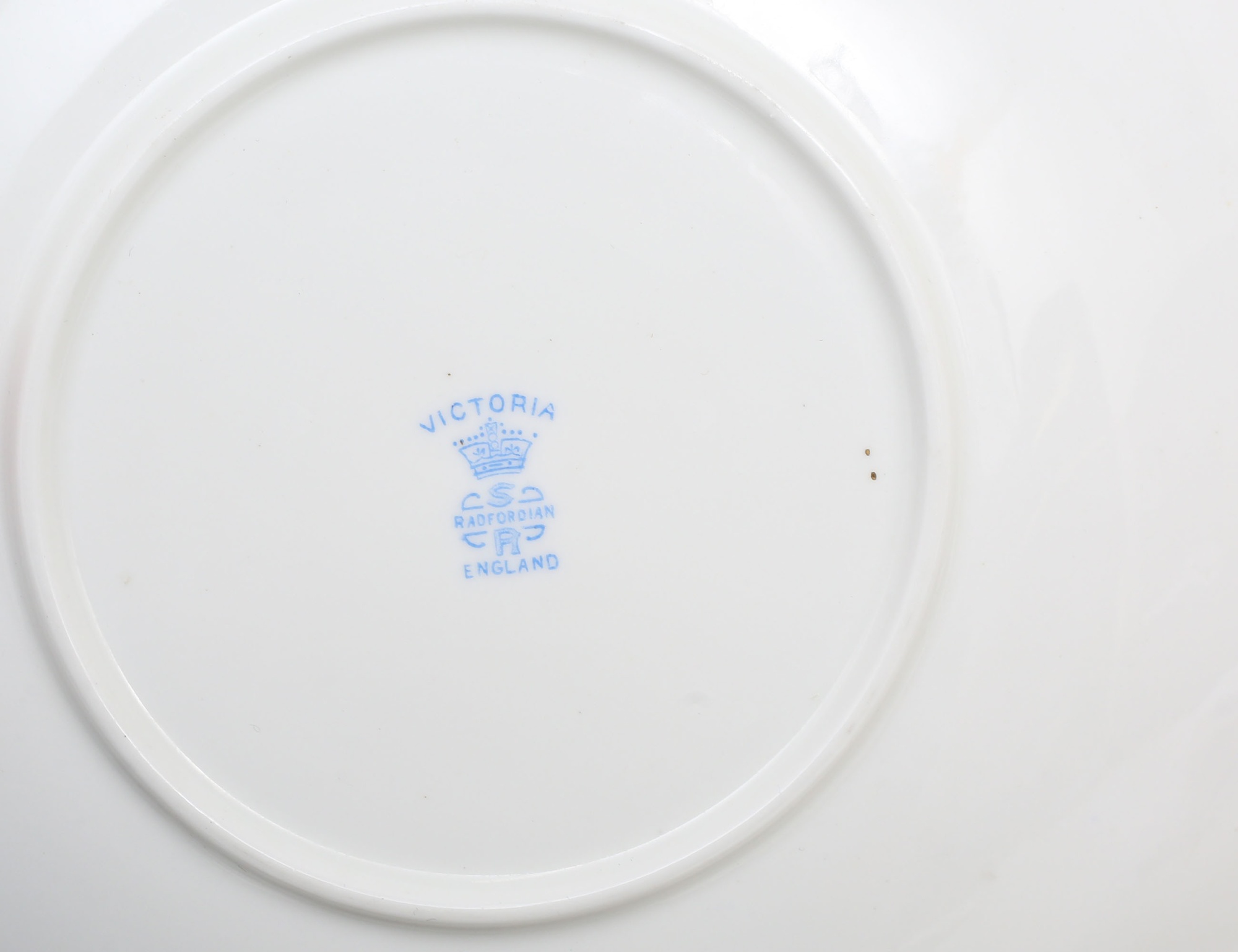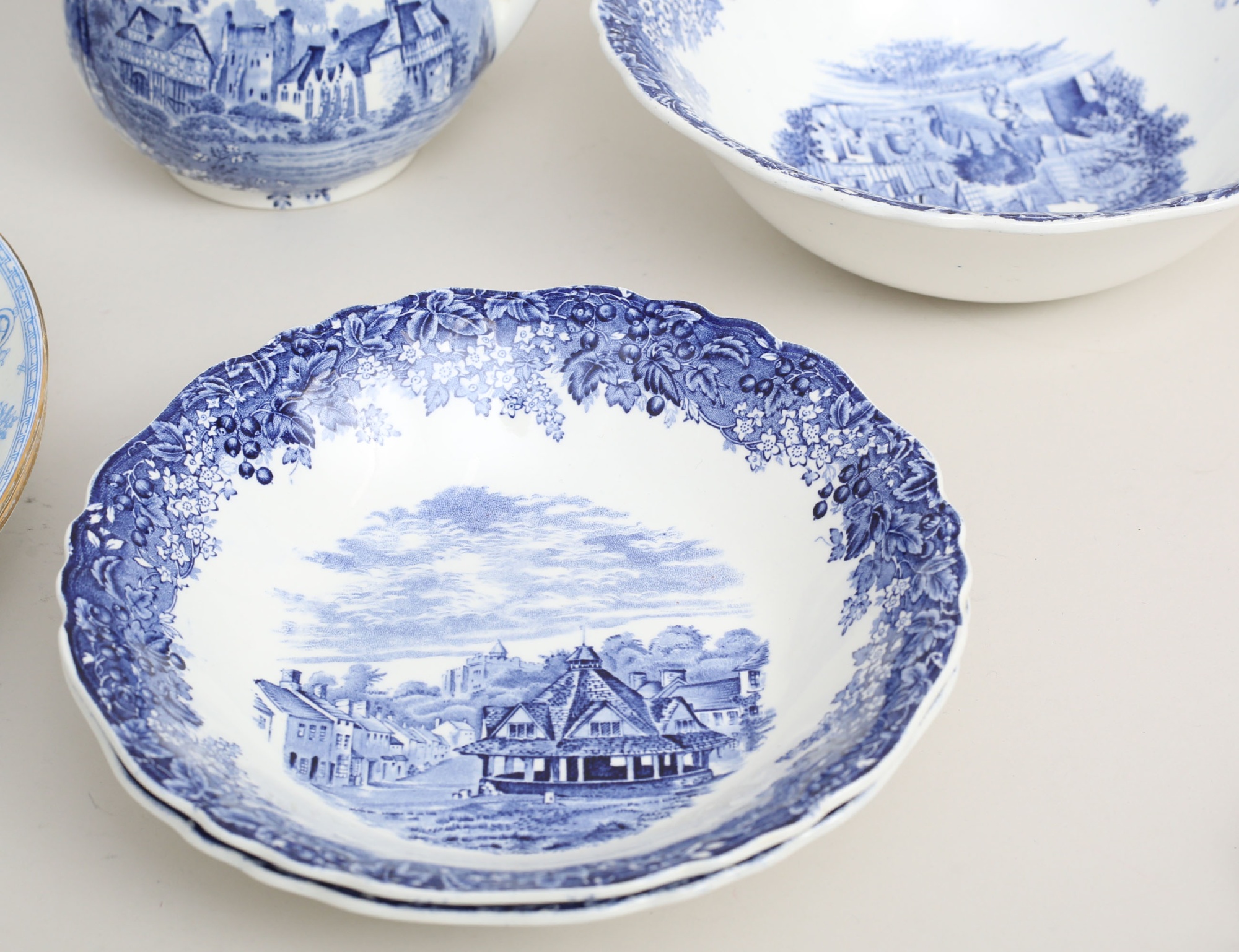 7 assietter samt 2 tallrikar "Victoria", 4 delar "Romantic England", J & G Meakin, serveringskanna skulpterad dekor, Staffordshire, höjd 17,5