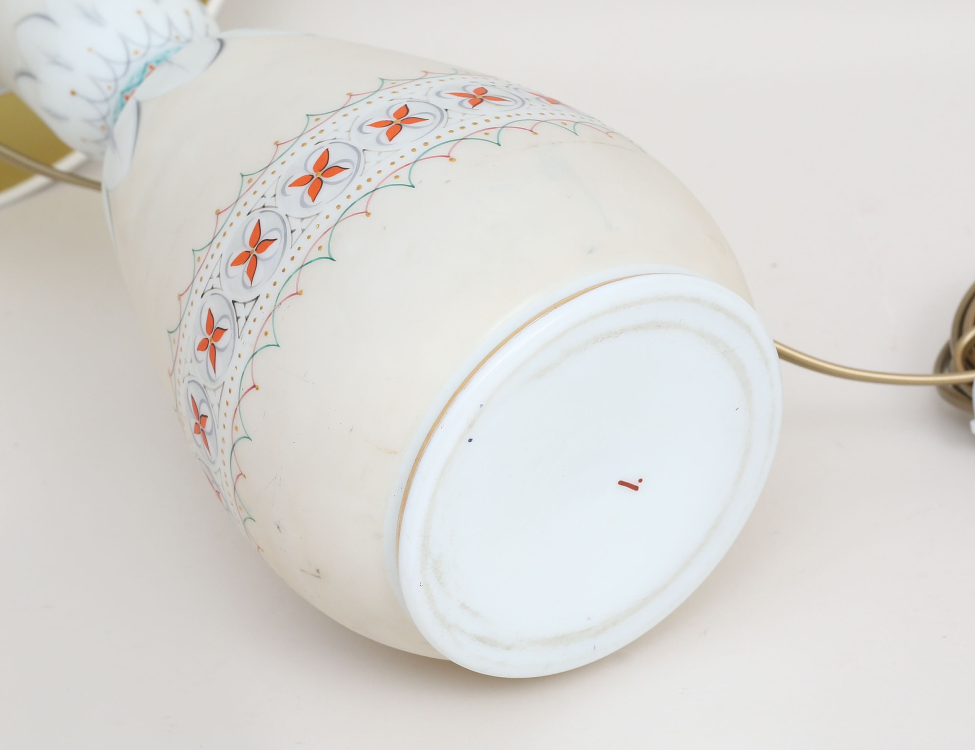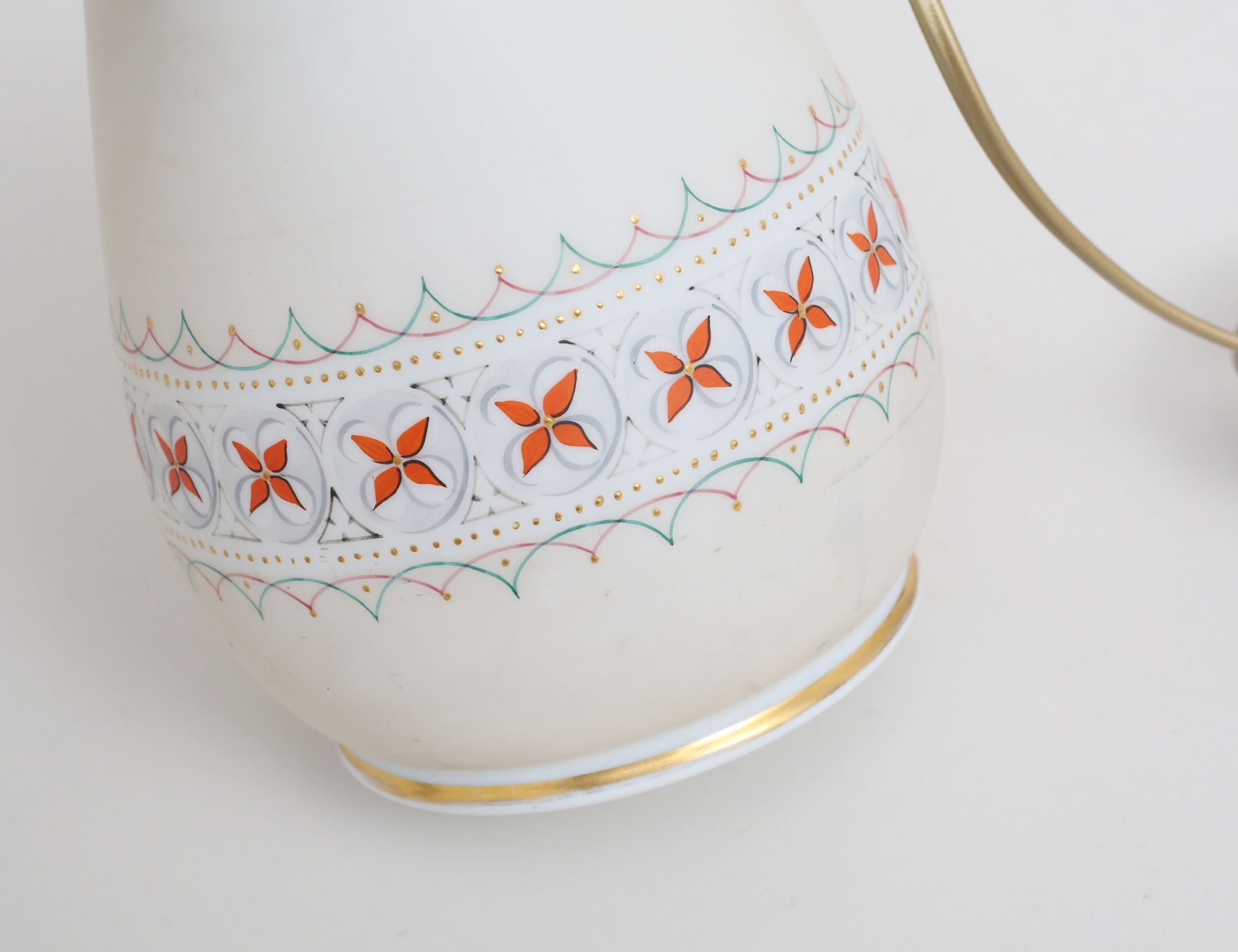 opakglas, vit lackskärm, senare montering i mässing, höjd 44 (5(