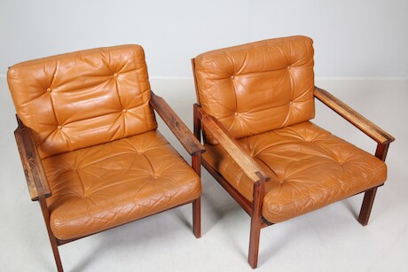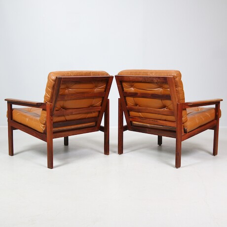 Bilder Illum Wikkelsö, fåtöljer ett par "Capella" Danmark, jakaranda & skinn