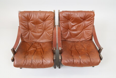 Bilder Fåtöljer 1 par "Hunter", Torbjörn Afdal, Bruksbo, Norge, 1970-tal, skinndynor, bredd 67 cm