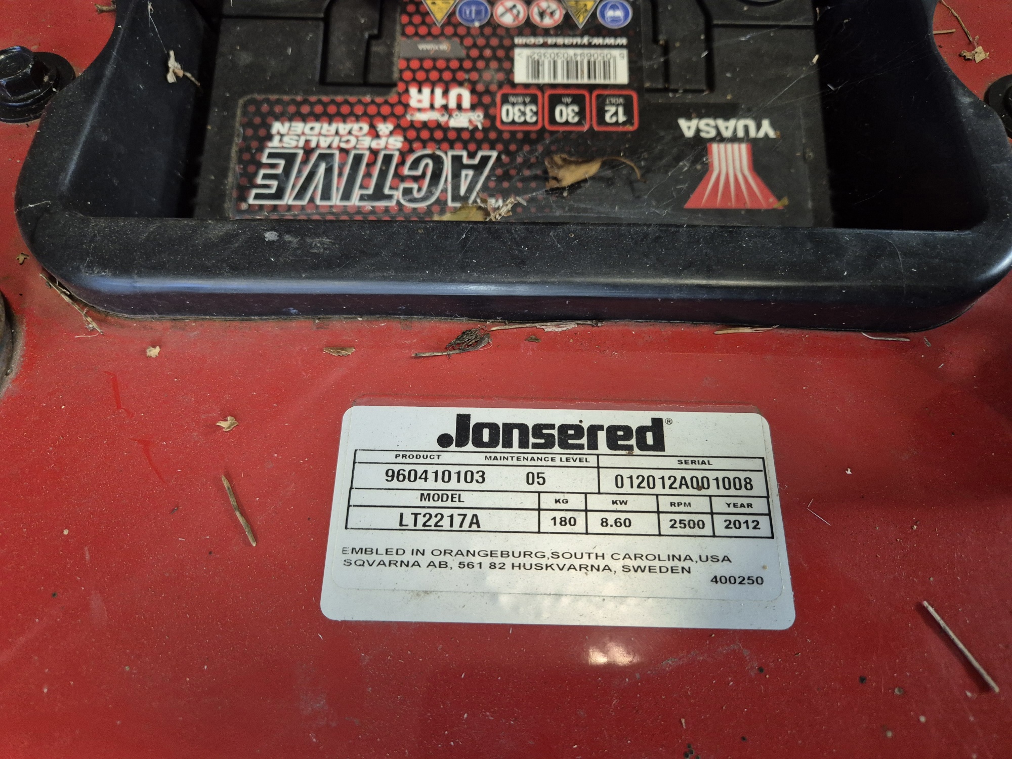 Modell: LT2217A. Ej funktionstestad men motor går runt, Drivremmar och luftfilter saknas. Bruksslitage.