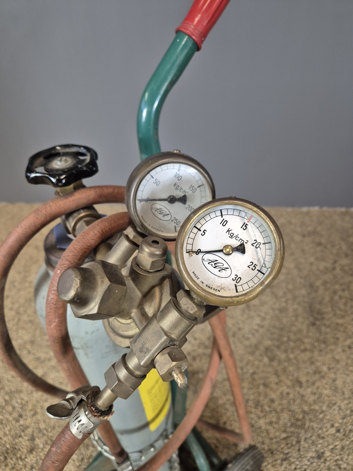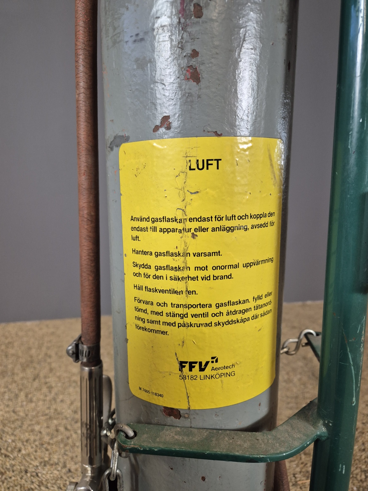 Vagn med tub för fyllning av tryckluft.