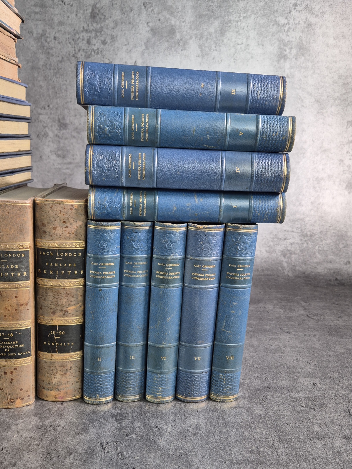 Parti böcker, skinnband.