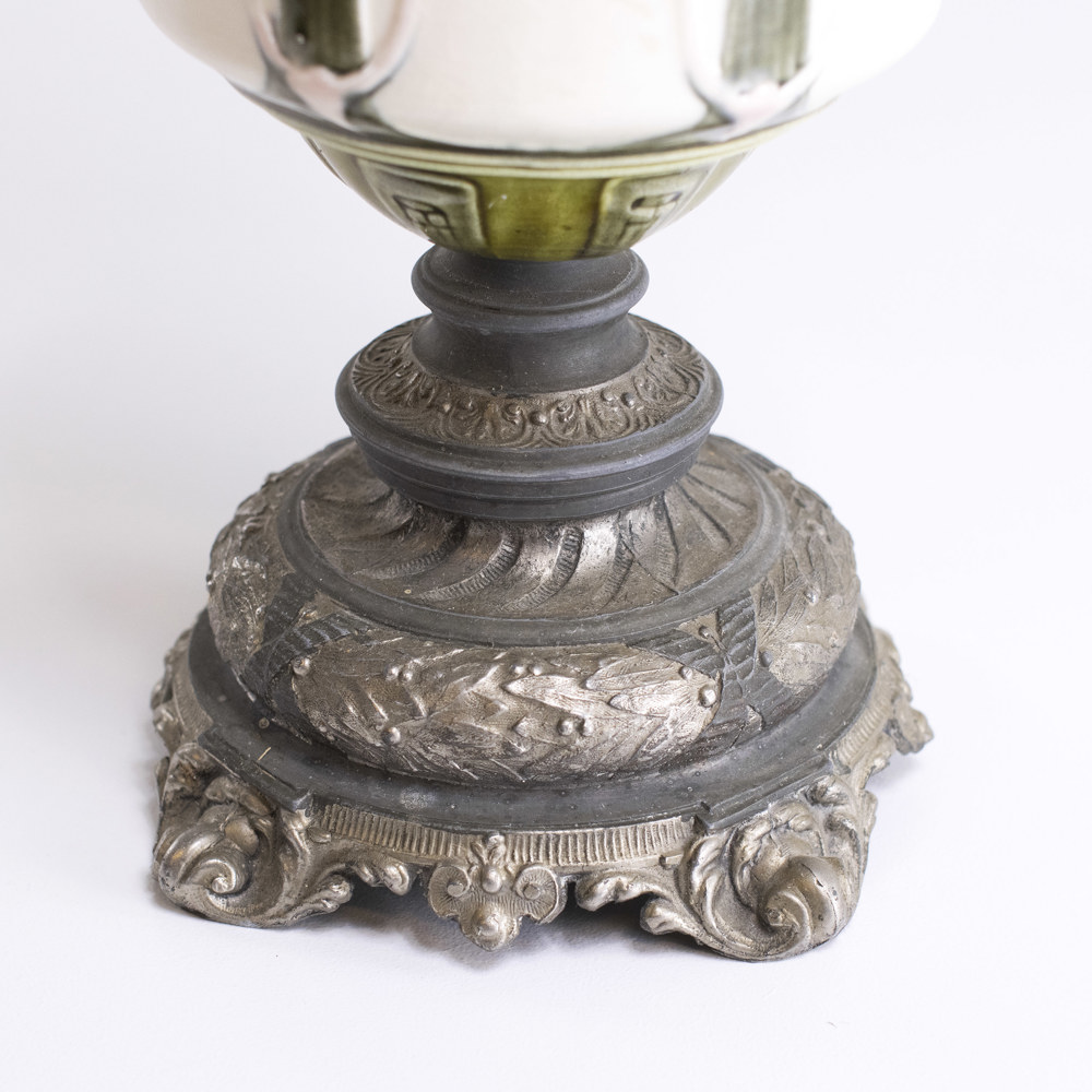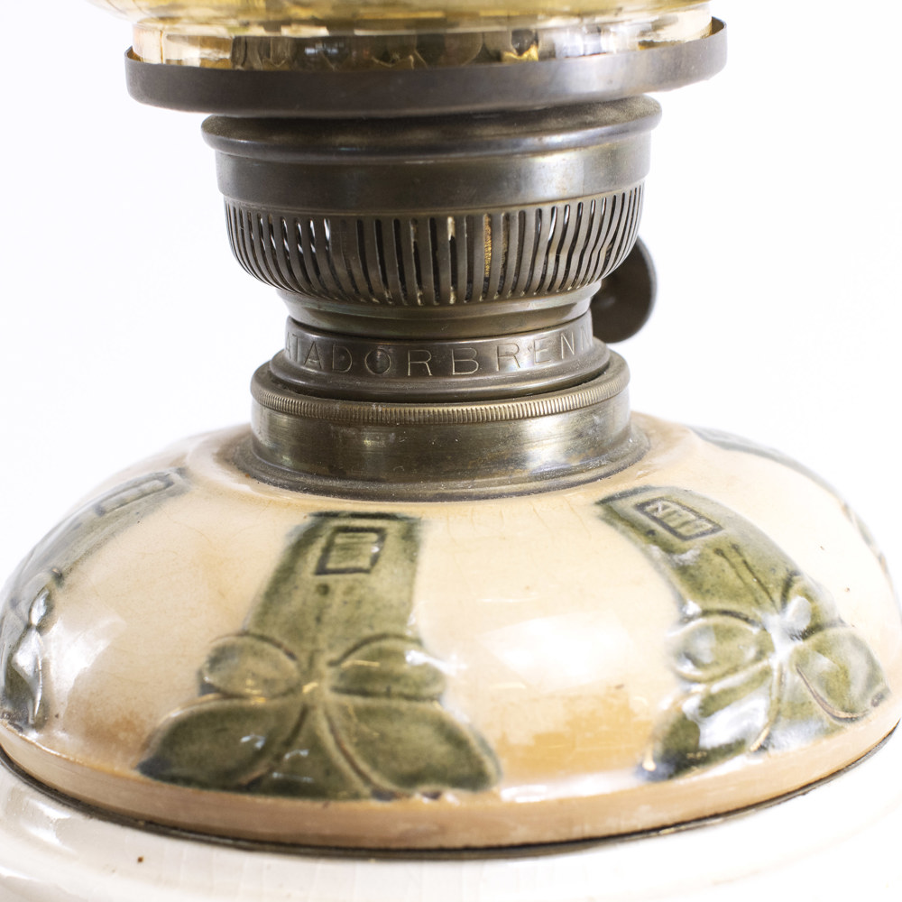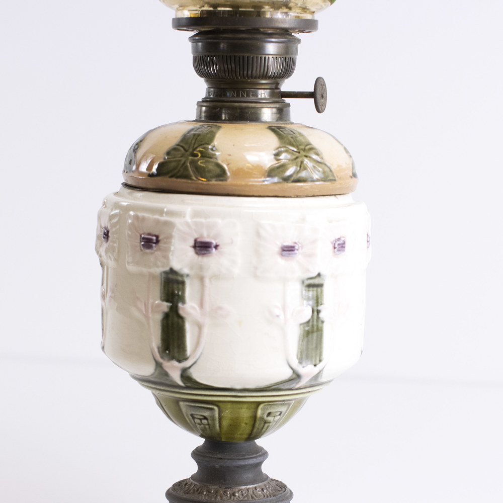 Fotogenlampa, majolika, jugend, Matadorbrenner, höjd 64 cm