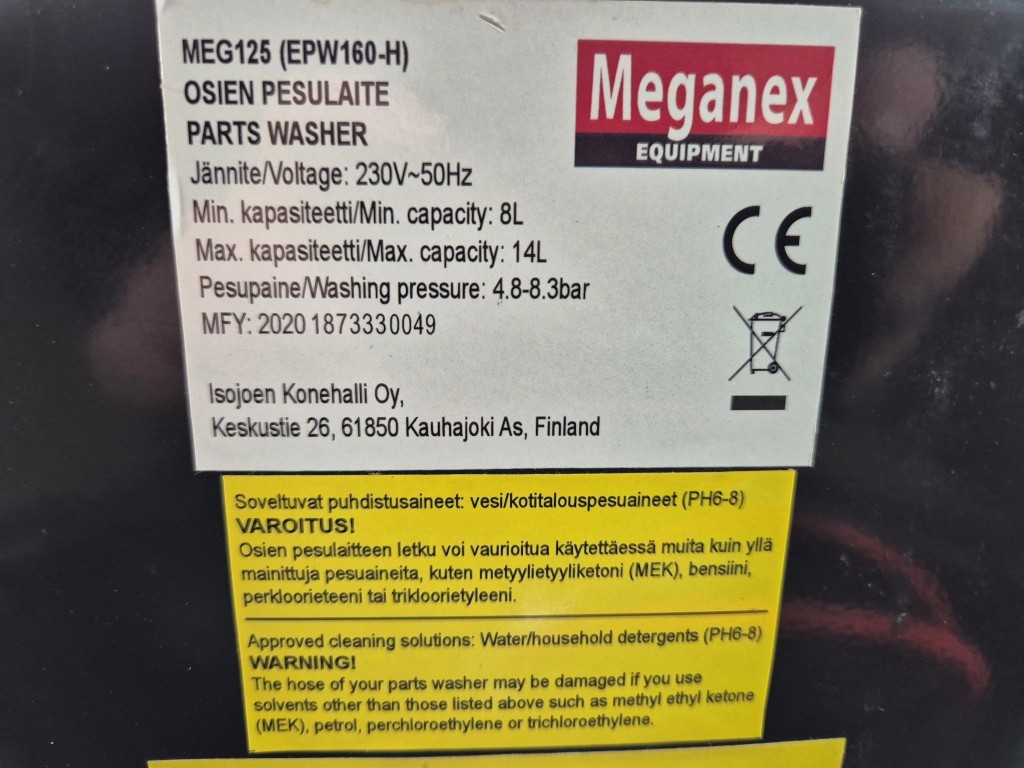 Smådelstvätt med värme MeganexModell: MEG 125Funktionstestad: Ok