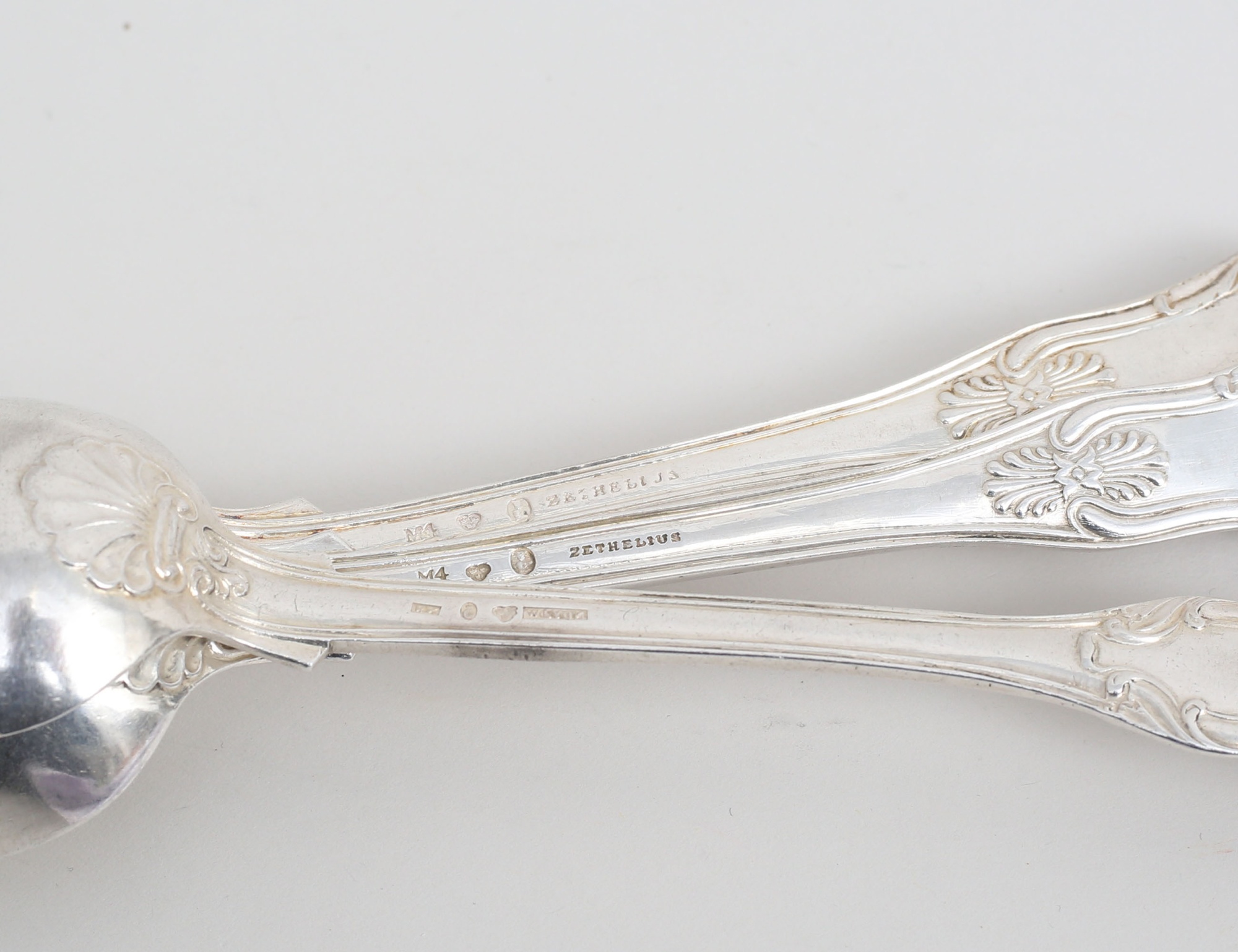 1 par modell "Engelsk snäck", Zethelius Stockholm 1842, 1 William Lyon Göteborg 1852, vikt 224 gram