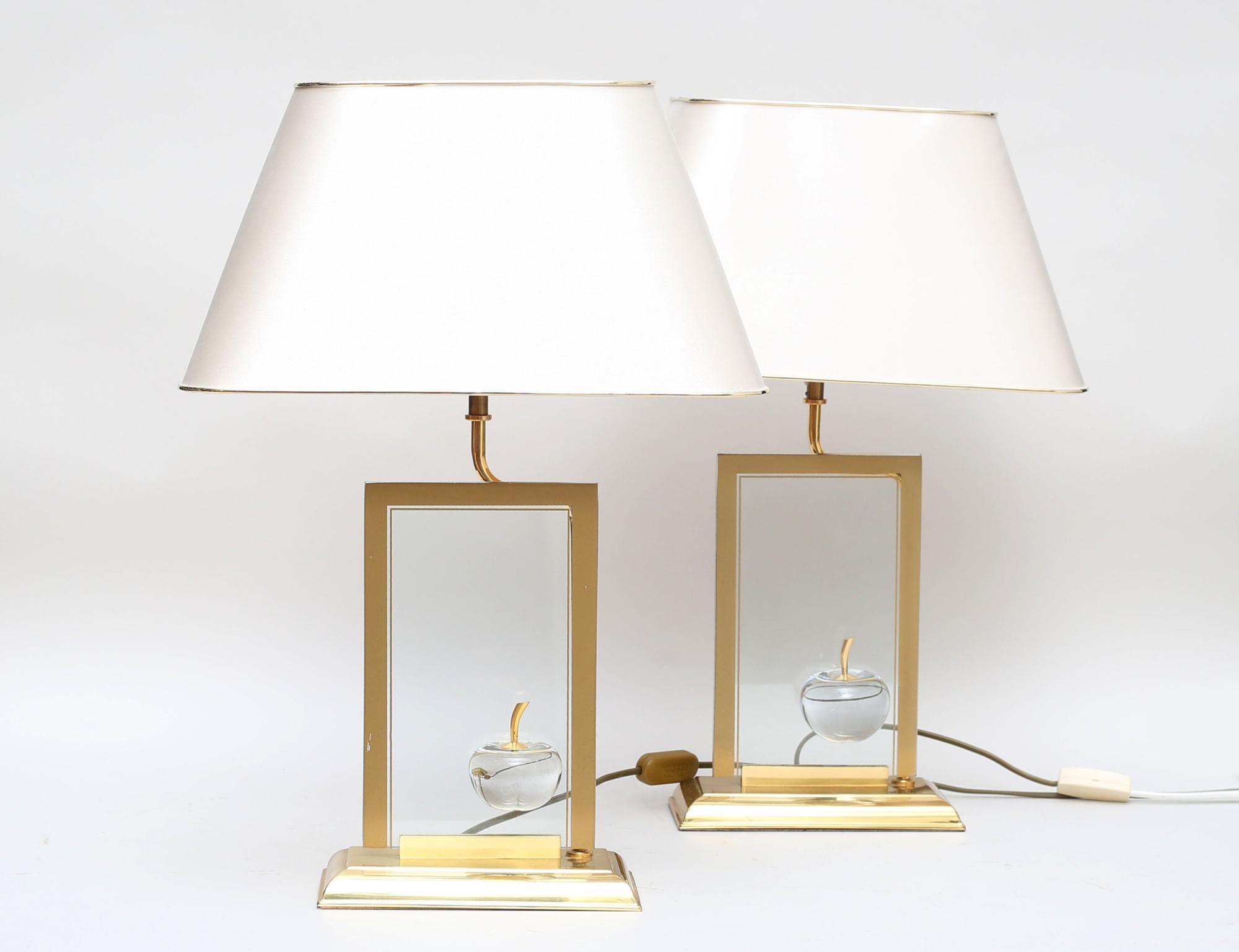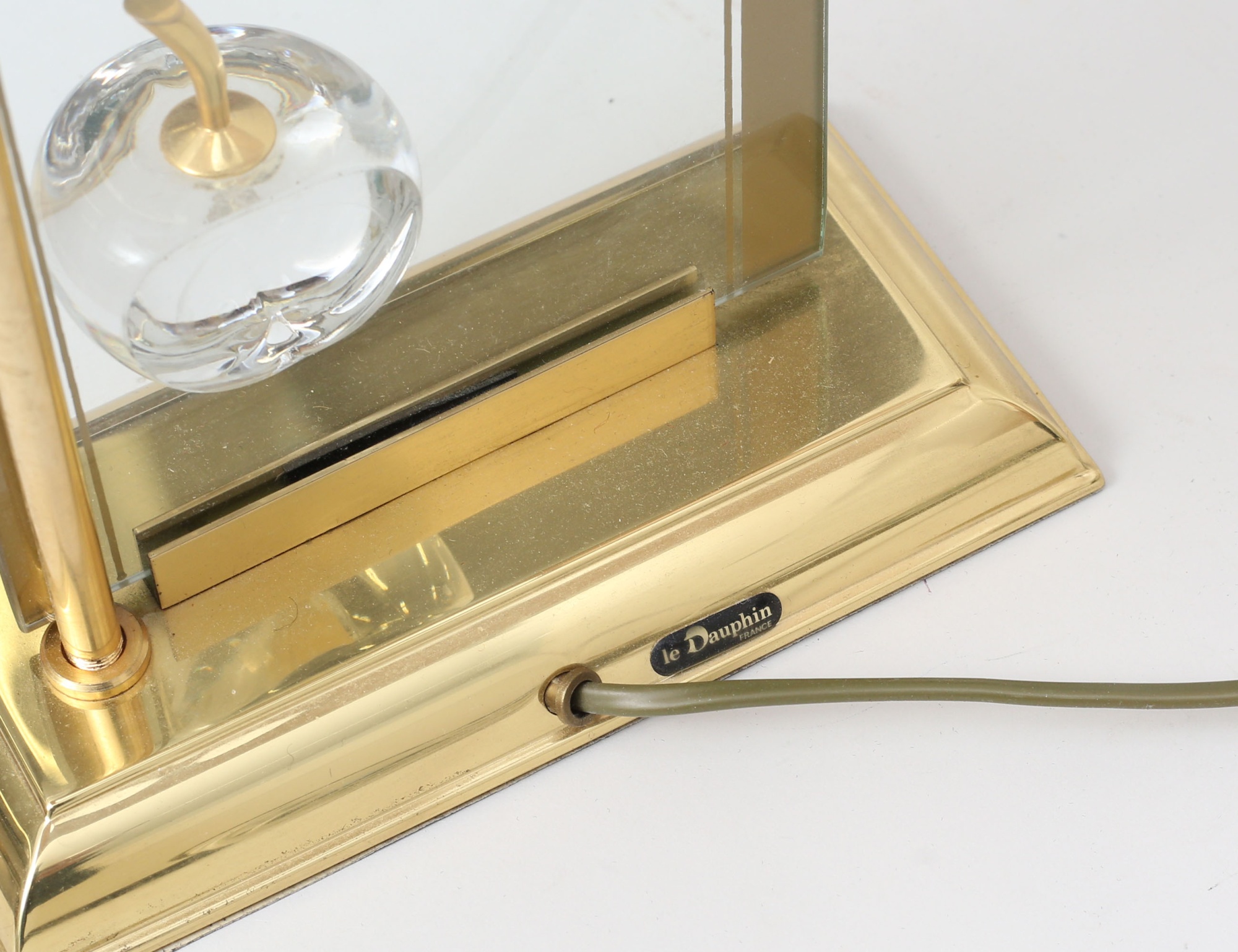 Le Dauphine Frankrike etikettmärkt, mässing och glas, seriekopplade, höjd 40 (53), bredd 21