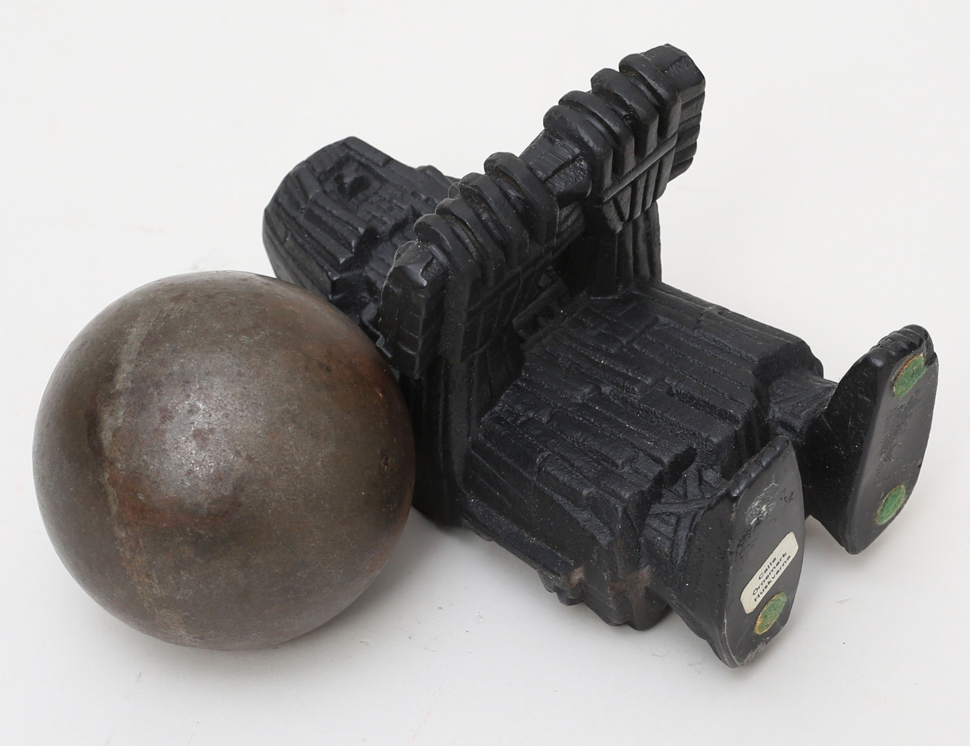 Calle Örnemark, gjutjärn, höjd 15, kanonkula gjutjärn, diameter 8 (2)