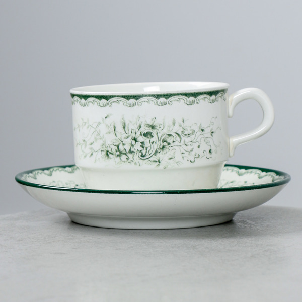 Rörstrand, "Grön Anna", kaffekoppar med fat, 15 dlr