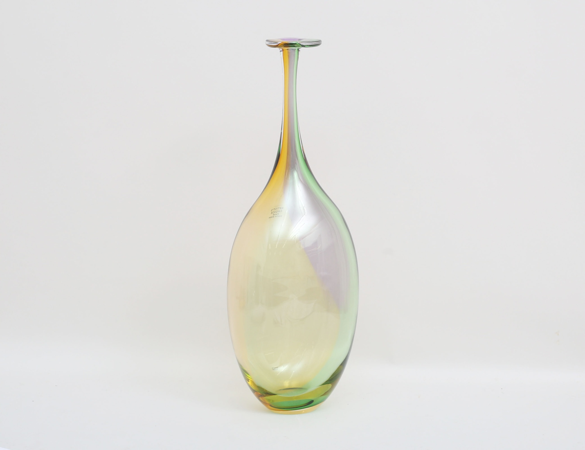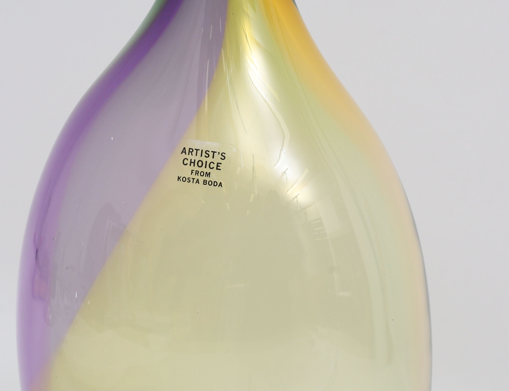 polykromt tonad glasmassa, signerad och numrerad 7048840, etikettmärkt Artist's Choice Kosta Boda, höjd 45