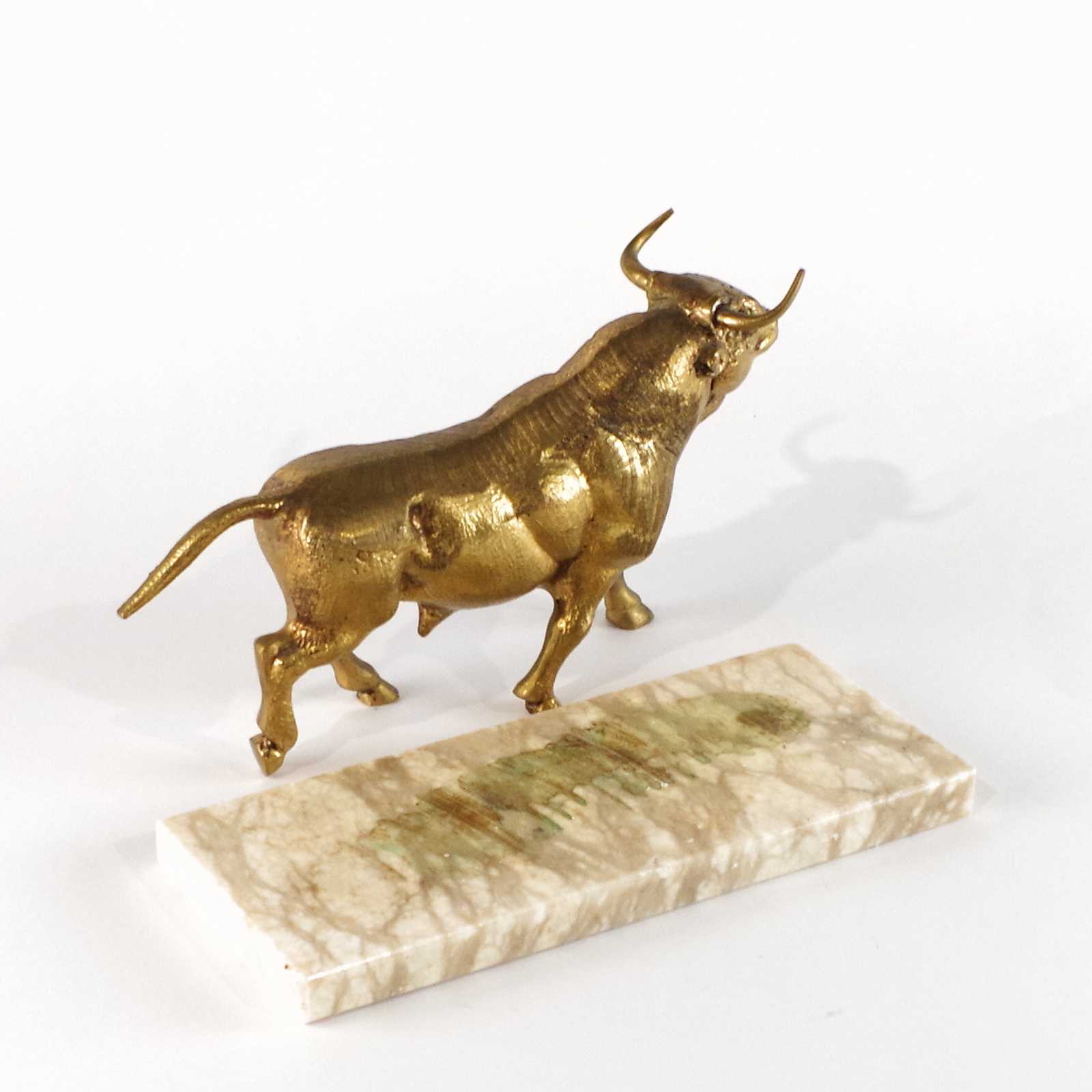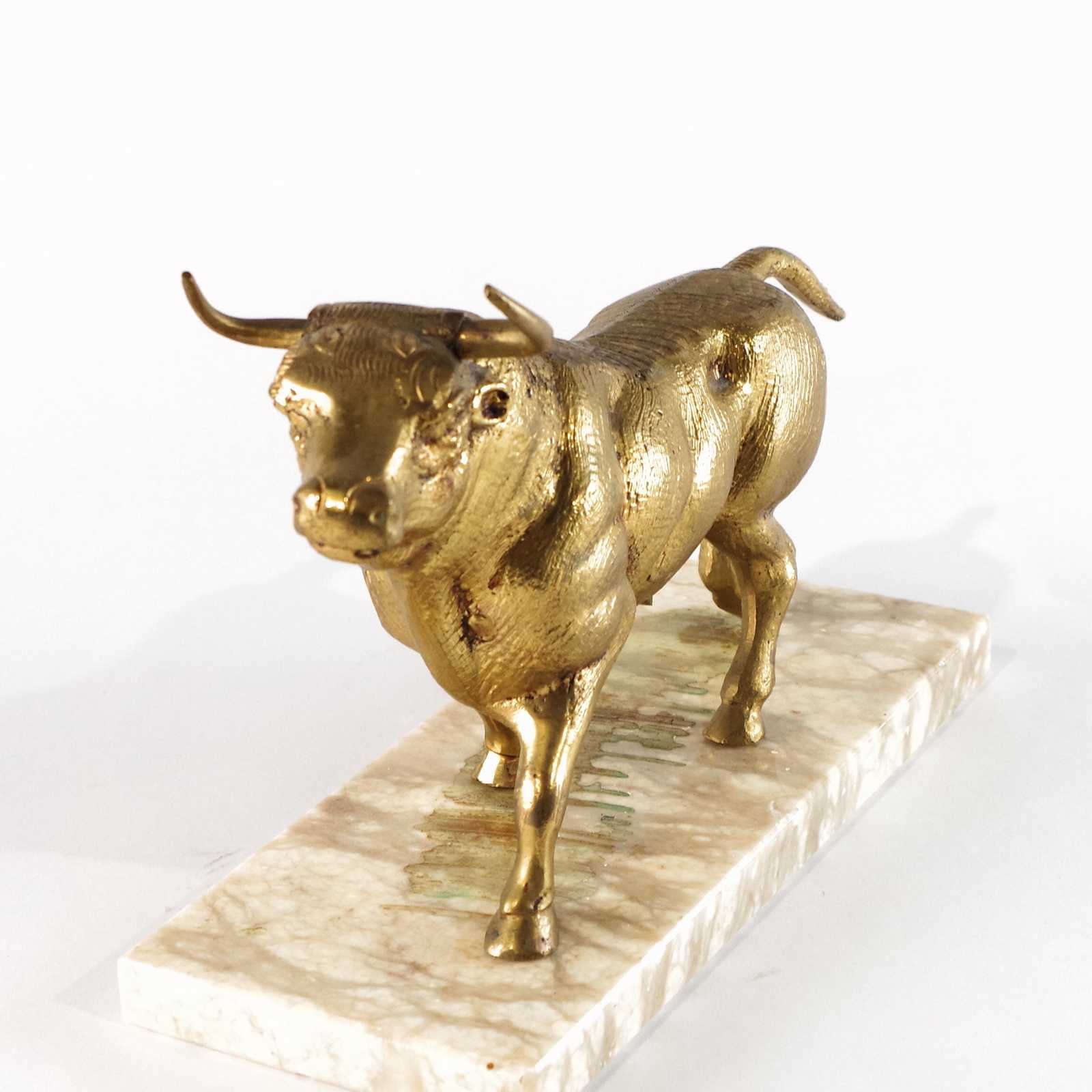 Bilder SKULPTUR mässingtjur med marmorsockel. H:17,5cm L:26 cm totalt.