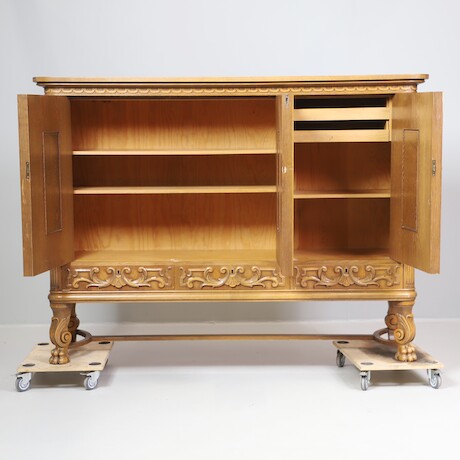 Bilder Serveringsskåp ek med skuren dekor 1900-talets första hälft 180 X 50 H=133
