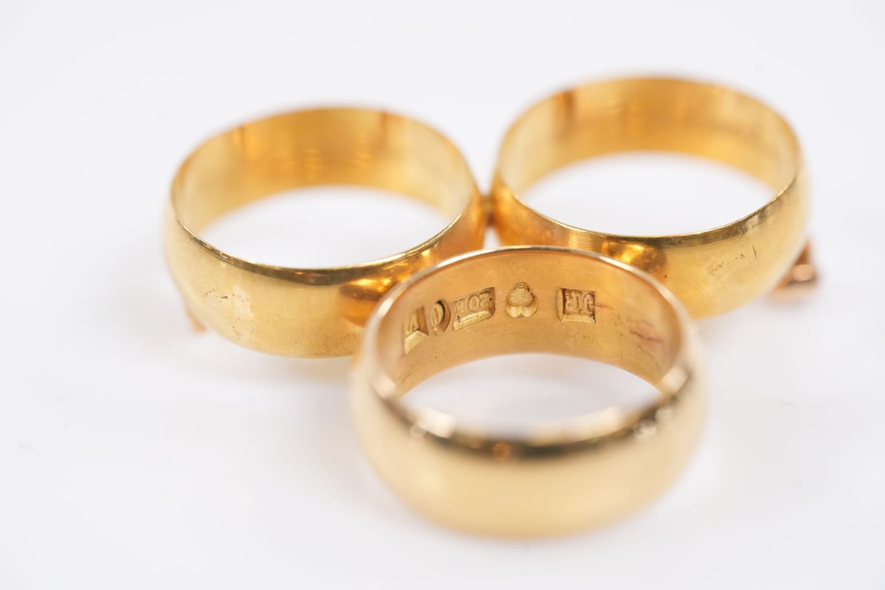 JOHAN RÖNNQVIST, brosch av 3 st ringar, guld, 23 k, samt 20 k, Örebro, 1896, 1899