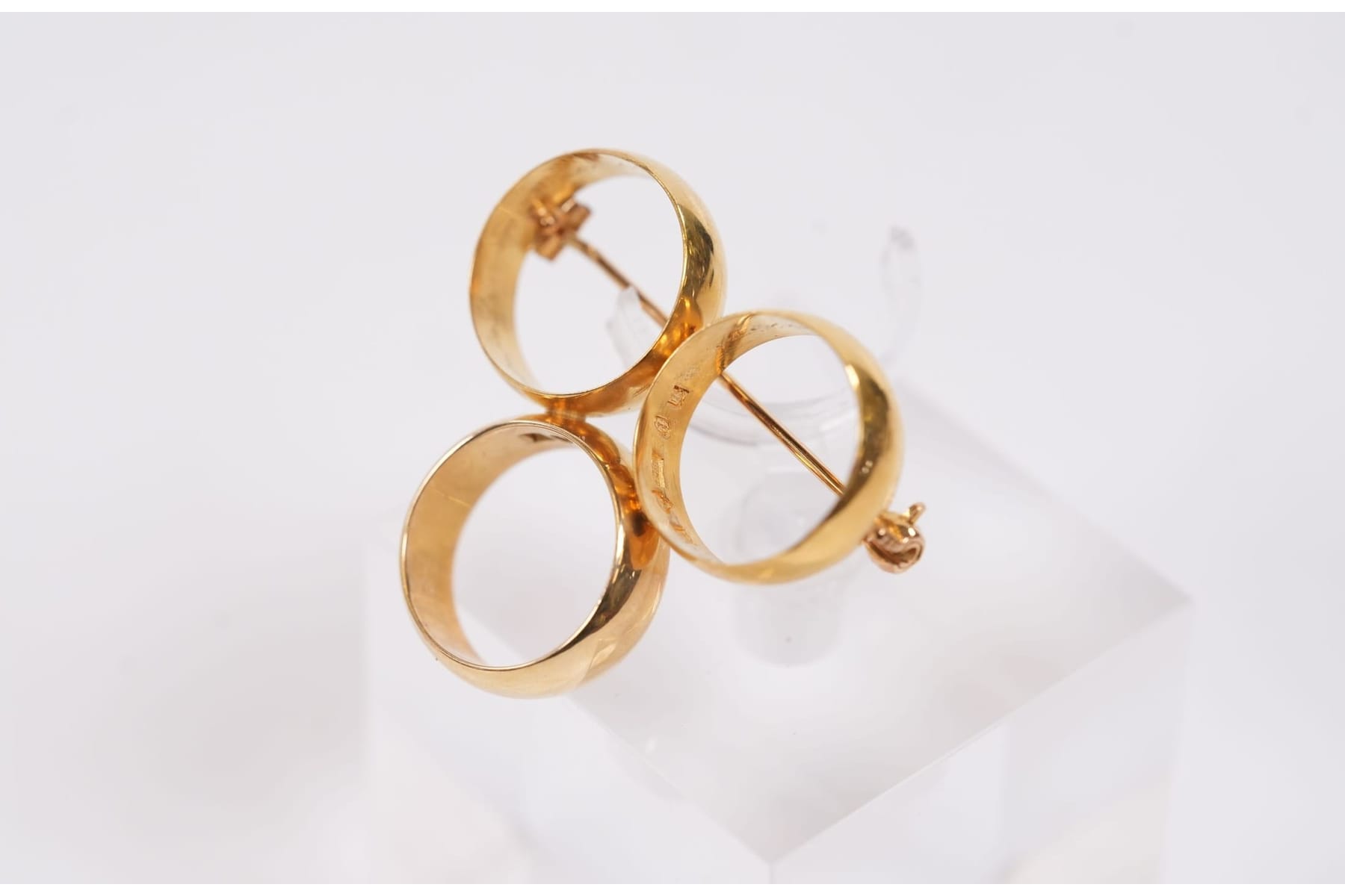 Bilder JOHAN RÖNNQVIST, brosch av 3 st ringar, guld, 23 k, samt 20 k, Örebro, 1896, 1899