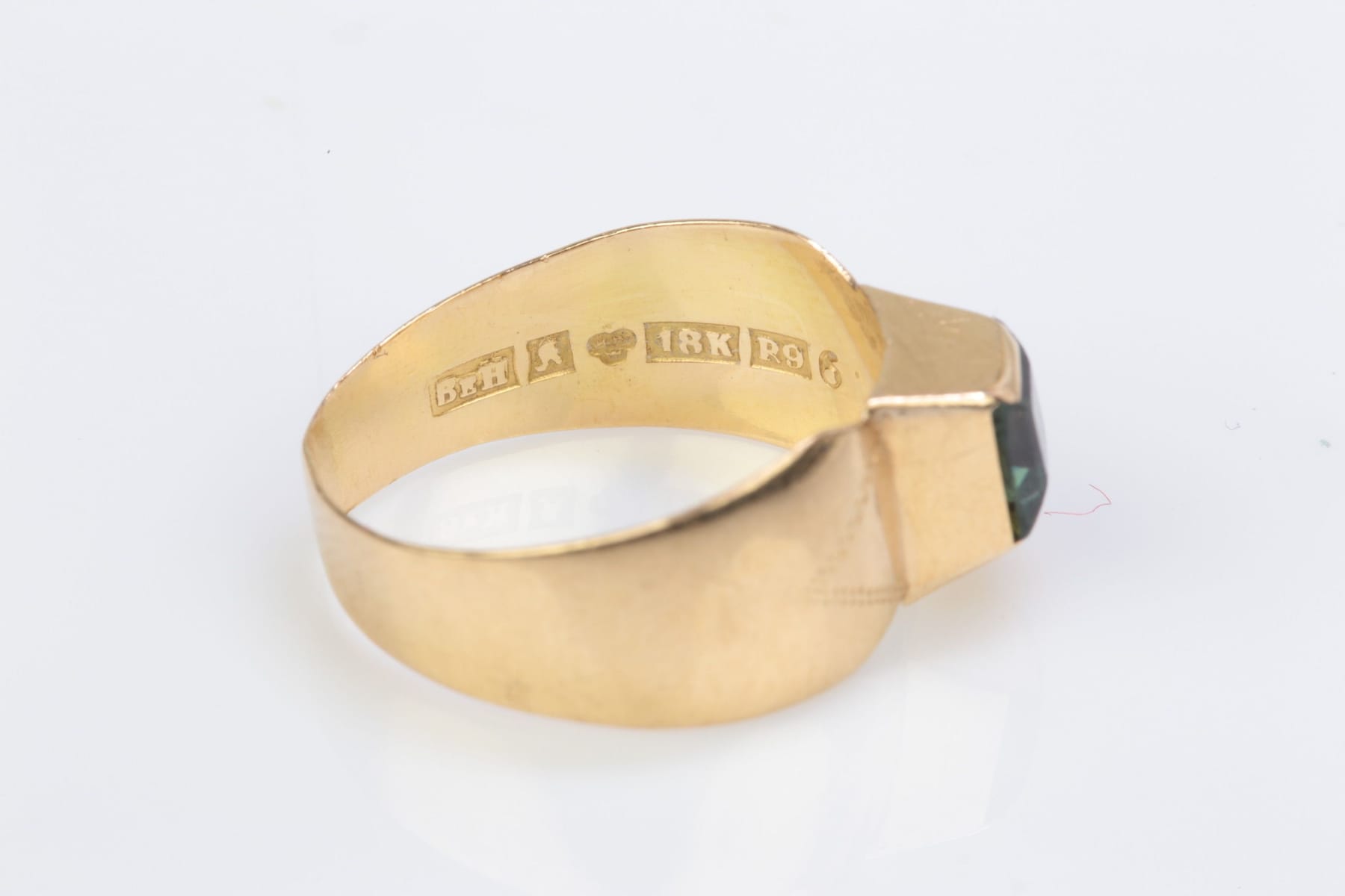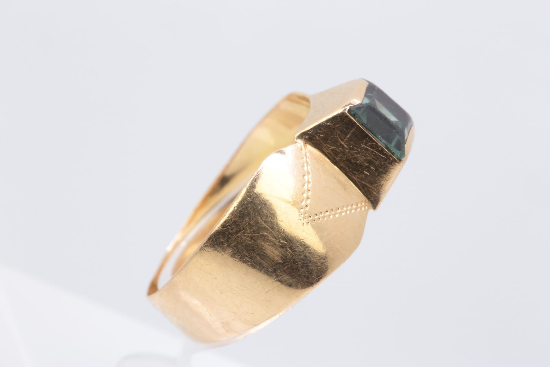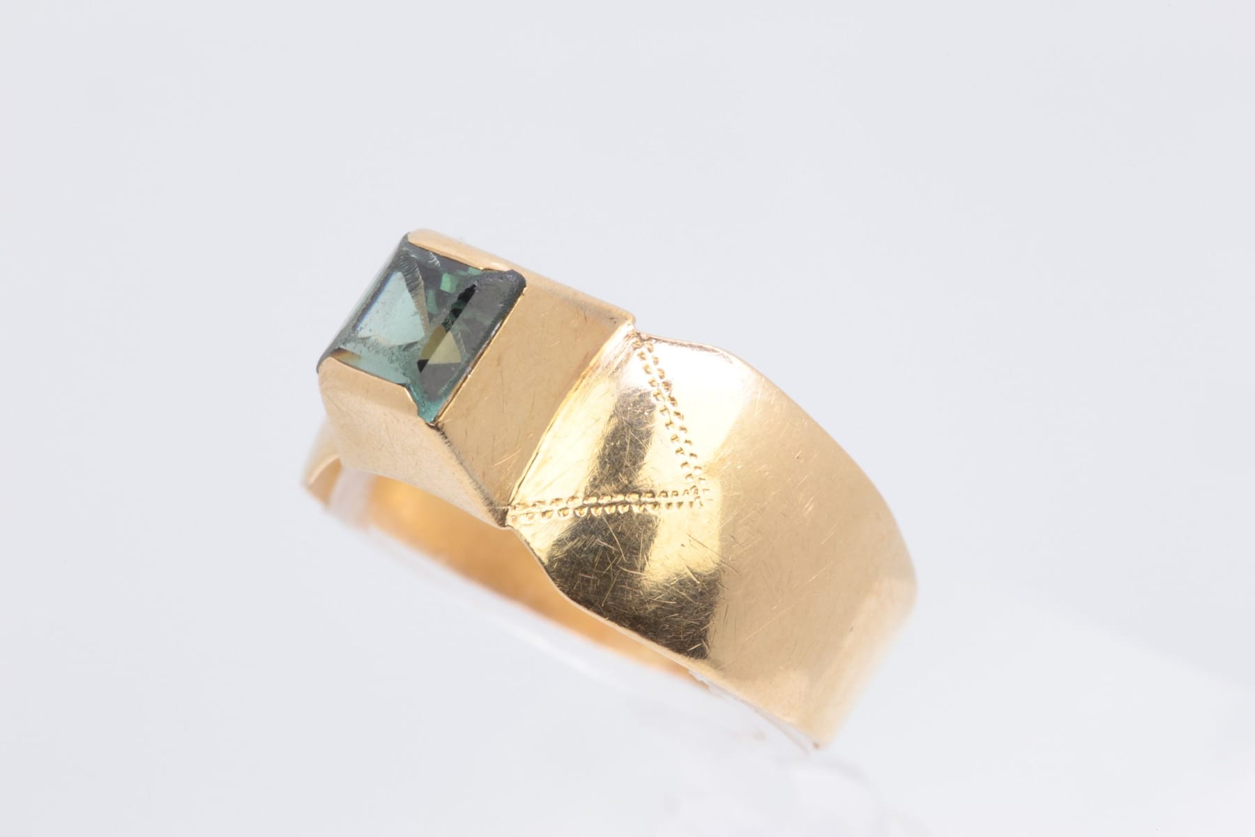 Bilder RING med carréslipad syntetisk grön spinell, guld, 18 k, ca 2,24 g, Bengt Hallberg Guldsmeds AB, Köping, 1967