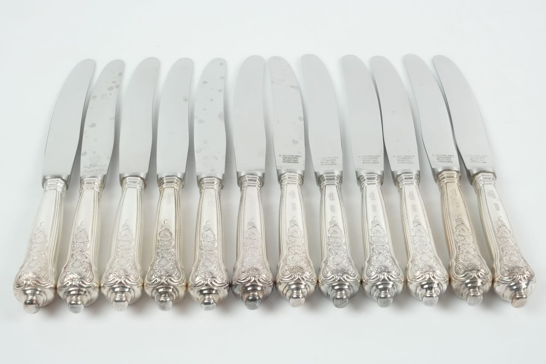Bilder OLE HAGEN (1913-1984), smörgåsknivar, 12 st, silver, sterling, "Rosenborg", A Michelsen, Danmark