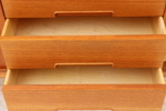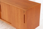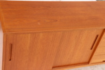 Teak. Med fyra skjutdörrar och fyra lådor. Nyckel finns.